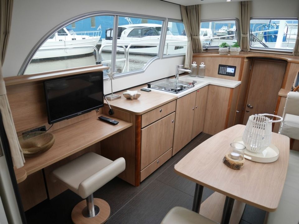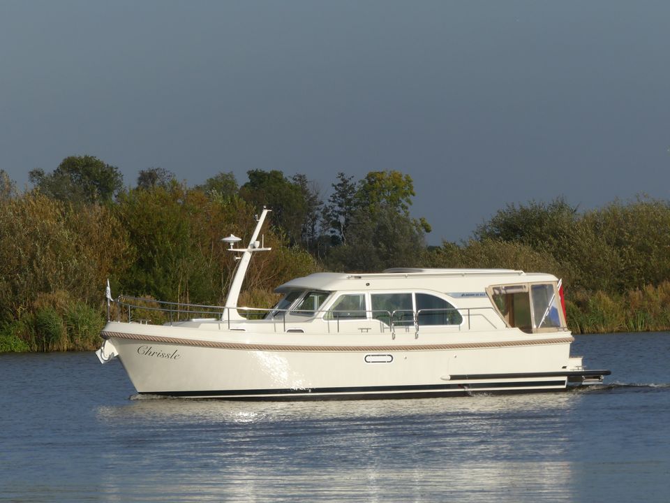Deze luxe en zeer compleet uitgeruste motorboot huur je vanuit Sneek. Een ideaal jacht voor het varen over de Friese meren, met haar lage doorvaarthoogte (2.40 meter) bereik je de allermooiste bestemmingen. Dit schip is geschikt voor 2 personen. Deze Linssen Grand Sturdy 30.0 Sedan beschikt over veel doordachte details o.a. elektrisch verstelbaar Variodeck schuifdak, verwarmde en afsluitbare) kuip. Stijlvolle salon met veel (dag)licht afgewerkt in prachtige lichte kleurstelling. Zeer uitgebreid besturing- en navigatiesysteem en boeg- en hekschroef. Ruime eigenaars hut met heerlijk bed en separate douche en sanitaire ruimte.