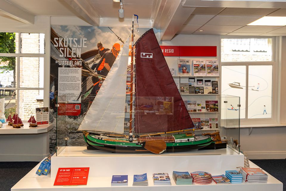 Het hart van het bezoekerscentrum wordt gevormd door een minutieus nagebouwd miniatuur skûtsje, bijna 2 meter lang en meer dan 1,5 meter hoog. Dit model, een replica van het IFKS wedstrijd skûtsje Ut en Thús, was het levenswerk van Cornelis (Cor) Roza (1955-2022), wiens familie het na zijn overlijden aan de VVV schonk. Het skûtsje symboliseert de diepe verbondenheid met de skûtsjesilcultuur in Langweer, waar Cor's passie voor het skûtsjesilen begon.