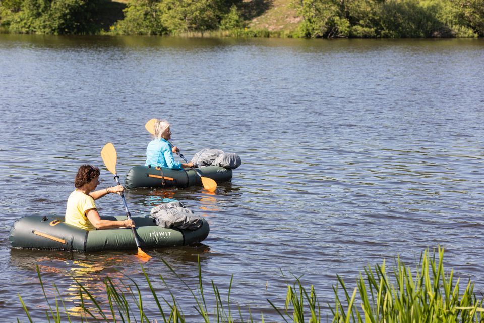 “Packraften? Bedoel je raften? We hebben toch helemaal geen wilde rivieren in Friesland?”, had Brenda verbaasd gereageerd toen ze gevraagd werd of ze het eens wilde proberen. Ze werkt bij de VVV en het Bezoekerscentrum in Heeg en staat altijd open voor iets nieuws, vooral als het actief is. Niet veel later staat ze, samen met haar vaste wandelmaatje Jennie, in het zonovergoten Rijs klaar voor hun eerste packraft-avontuur. Wat ze precies kunnen verwachten? Geen idee. “Ja, solexen in Gaasterland ken ik wel”, zegt Jennie lachend. “Maar dit? Ik heb echt geen idee wat de bedoeling is.” Van packraften hebben ze allebei nog nooit gehoord, maar nieuwsgierig zijn ze absoluut. En dat is eigenlijk het enige wat je nodig hebt.