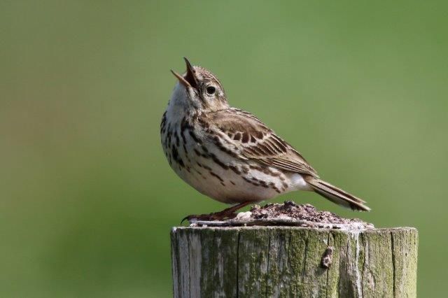 De graspieper is een kleine, slanke zangvogel die voornamelijk voorkomt in open weilanden en moerassen. Je herkent deze vogel aan zijn gestreepte bruine verenkleed, vaak met een lichte, gestreepte borst en buik. Een opvallend kenmerk van de graspieper is zijn gedrag tijdens de vlucht. Het vogeltje maakt op- en neergaande vluchten, waarbij hij zingt als hij stijgt, en dan weer plotseling daalt met gespreide vleugels. Het geluid dat ze maken, is een soort melodieus gezoem dat klinkt als ‘tsiep-tsiep’.