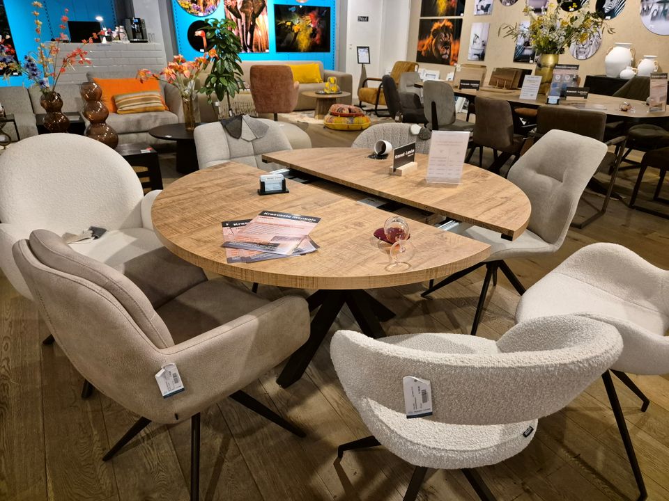 Meubels: Bankstellen, (Krasvaste-) Eetkamertafels met en zonder uitschuifmogelijkheid, (Relax-) Fauteuils, Salontafels, Bartafels en barstoelen;