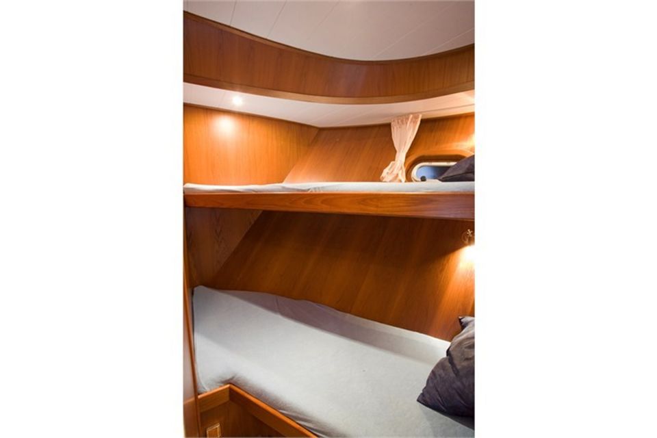 Deze Drait Yacht is een ruime boot met een capaciteit voor 12 personen. Uitermate geschikt voor een familie of vriendengroep. Kijk op de plattegrond voor de indeling van deze motorjacht. De boot heeft een ruim achterdek met zitbank en terrasmeubilair waar je gezellig kan zitten met een grote groep. Het achterdek wordt volledig afgesloten met een grote tent. De stuurstand is volledige uitgerust met de benodigde apperatuur. De boot is gemakkelijk te manoevreren met boeg- en hekschroef.