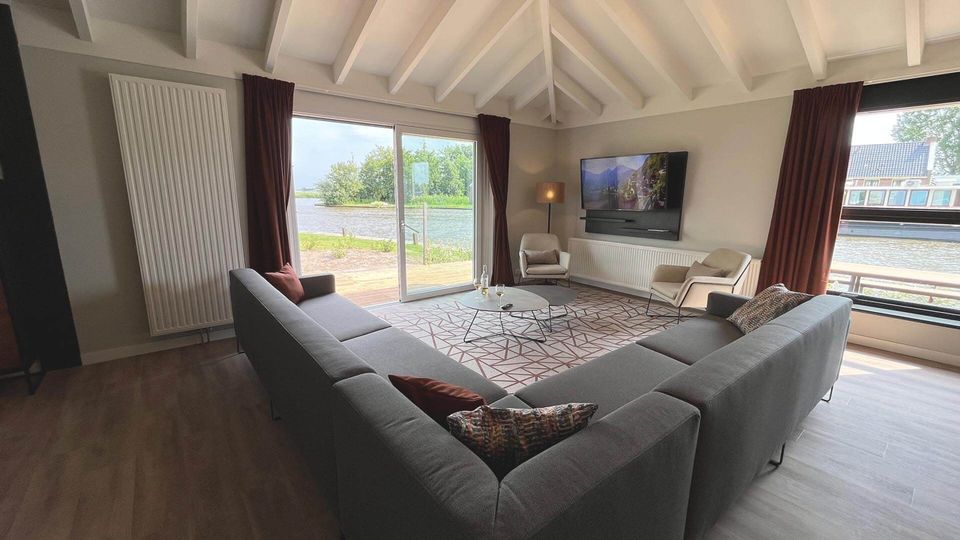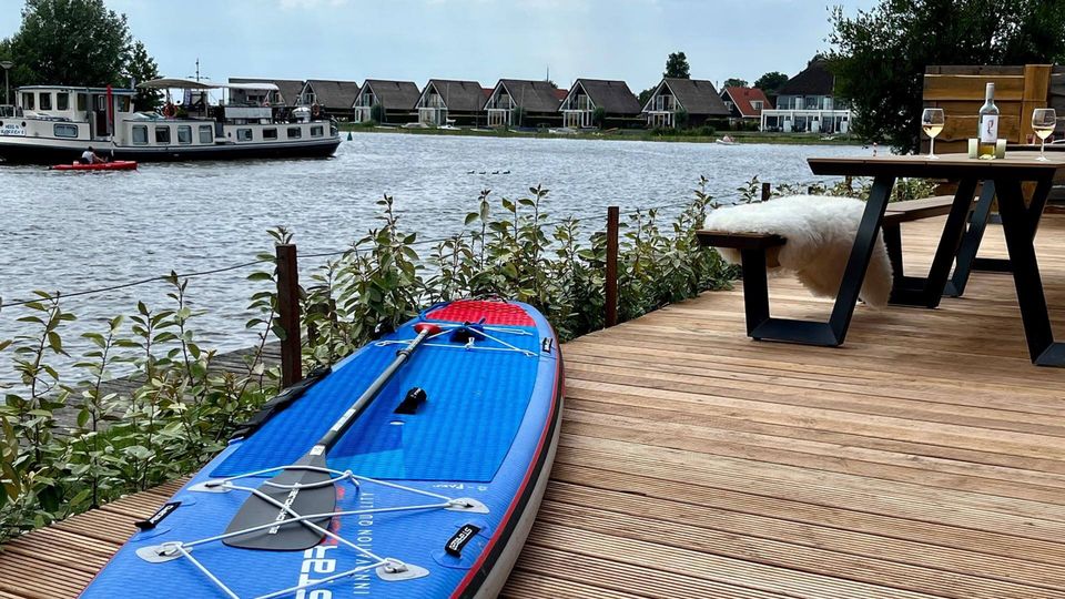Verder beschikt de watervilla over een volledig ingerichte keuken en een grote gezamenlijke ruimte waar je met de hele groep samen kunt zitten. Huur een bootje en meer hem aan bij het terras, zo kun je meteen het water op voor een mooie tocht over de Friese Meren.