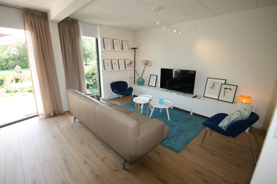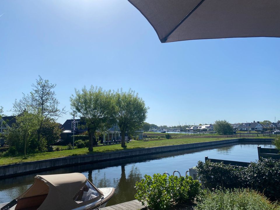 Deze fijne woning heeft een ruime oprit waar twee auto's geparkeerd kunnen worden en een fijne tuin aan het water. In de tuin zijn diverse zitjes en je hebt de mogelijkheid om je (gehuurde) boot voor de deur aan te meren! Door de grote schuifpui en vele ramen is dit huis licht en zonnig. De woonkamer is gezellig ingericht met moderne meubels en comfort. Dineren doe je aan de ronde tafel die eveneens in de woonkamer staat. Er is een ruime hoekkeuken met onder andere een grote oven, gaskookplaat en koelkast met losse vriezer. Op de eerste verdieping zijn drie slaapkamers gerealiseerd waarvan twee over een tweepersoons boxspringbed beschikken. De derde slaapkamer is iets kleiner en heeft een eenpersoons boxspringbed. Tevens is er op deze verdieping een ruime, moderne, badkamer. Deze badkamer beschikt over een ligbad/douche, toilet en wastafel. Daarnaast is er op de begane grond nog een tweede toilet en staat er in de berging een wasmachine.