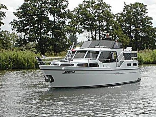 De Regina is een ruim motorjacht voor 4 tot 6 personen. Binnen vind je een aparte slaapkamer met een tweepersoonsbed, een slaapkamer met twee eenpersoonsbedden en een ombouwbare dinette. De salon is licht en comfortabel, met een volledig uitgeruste keuken, aparte douche en elektrisch toilet. Buiten is er een fijn achterdek met zitplaatsen en stuurstand, ideaal om te genieten van het uitzicht en de buitenlucht.