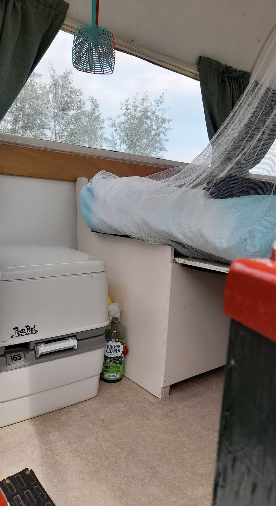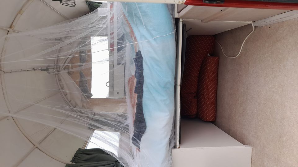 Via Vrienden op de fiets willen boeken, lukte niet ivm Sneek week. Daardoor ook nog meer betaald. Bed was bij aankomst (goed bedoeld) opgemaakt, maar is niet handig ivm zeer beperkte ruimte. Bed is zo kort, waardoor je de benen niet kunt strekken. Klein campingtoilet staat direct naast het bed; geen privacy! Erg veel muggen overlast gedurende de hele nacht ten gevolge van allerlei openingen via huifkar zeil. Was onze 1e overnachting, helaas teleurstellend. Foto's geven een vertekend en misleidend beeld.
