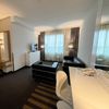 Deze Junior Suite is ruim en licht ingericht en heeft zowel een woonruimte met bank en fauteuil als ook een groot kingsize bed. Er is een bureau met grote spiegel waar je prima kunt werken. De badkamer is eveneens ruim opgezet met een douche, ligbad, wastafel en toilet.