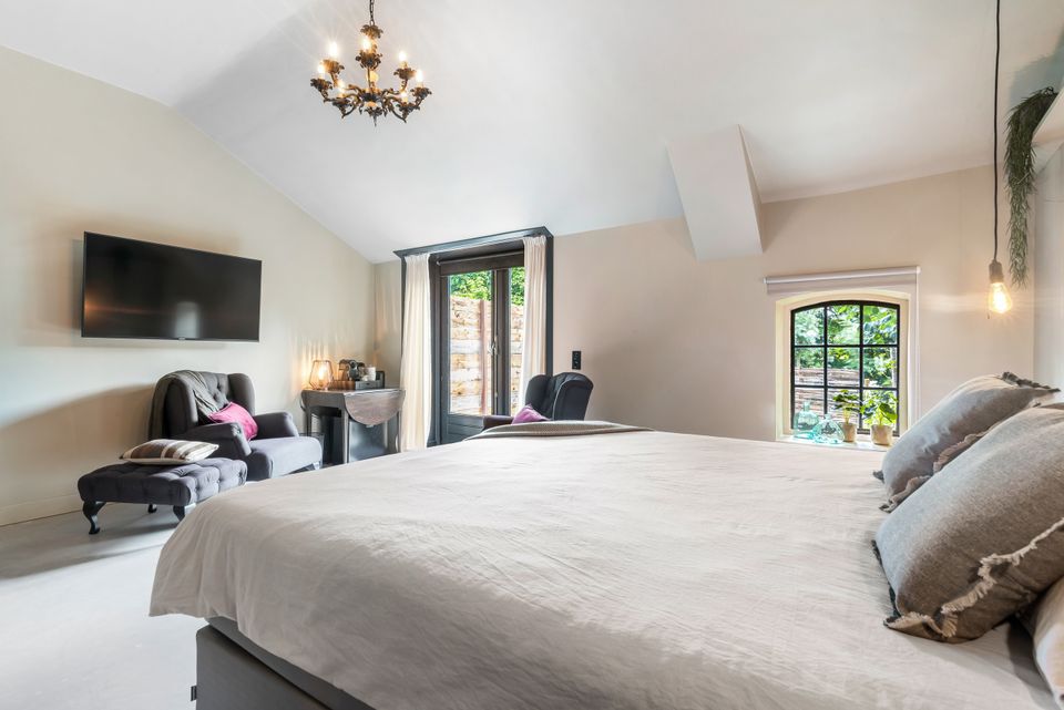 In de voormalige schuur van de gerenoveerde boerderij is een stijlvolle B&B gerealiseerd met een mooie ontbijtruimte en drie comfortabele kamers. Twee van de kamers zijn gesitueerd op de eerste verdieping en een derde kamer is gelegen op de begane grond. Alle kamers beschikken over de mogelijkheid tot het zetten van een kopje koffie of thee en in de badkamer staat shampoo en douchegel van Marcels Green Soap. Er is tevens een knus terras voor gezamenlijk gebruik, waar bij mooi weer het ontbijt geserveerd kan worden. De kamers zijn allen geschikt voor tweepersoons gebruik en kinderen zijn welkom vanaf de leeftijd van 12 jaar. Voor het reserveren van een kamer in deze B&B dien je rechtstreeks contact op te nemen met de eigenaresse.