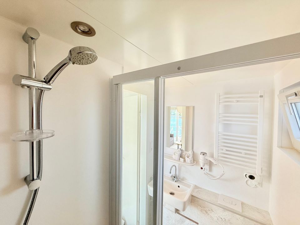 Dit Boothuisje is praktisch en comfortabel ingericht. Het is een compacte hotelkamerboot welke is voorzien van een goede airconditioning. Binnen vind je een open leefruimte met SmartTV, een zithoek met keukentje. Er is een aparte slaapruimte met een ruim tweepersoons bed en er is een extra kamer met een stapelbed. De badkamer beschikt over een douche en toilet. Buiten heb je een eigen terras op zowel het voordek als op het dakterras. Zo kun je heerlijk uitkijken over alles wat er in de huisboothaven en op het Sneekermeer gebeurt. Verrassend en levendig!