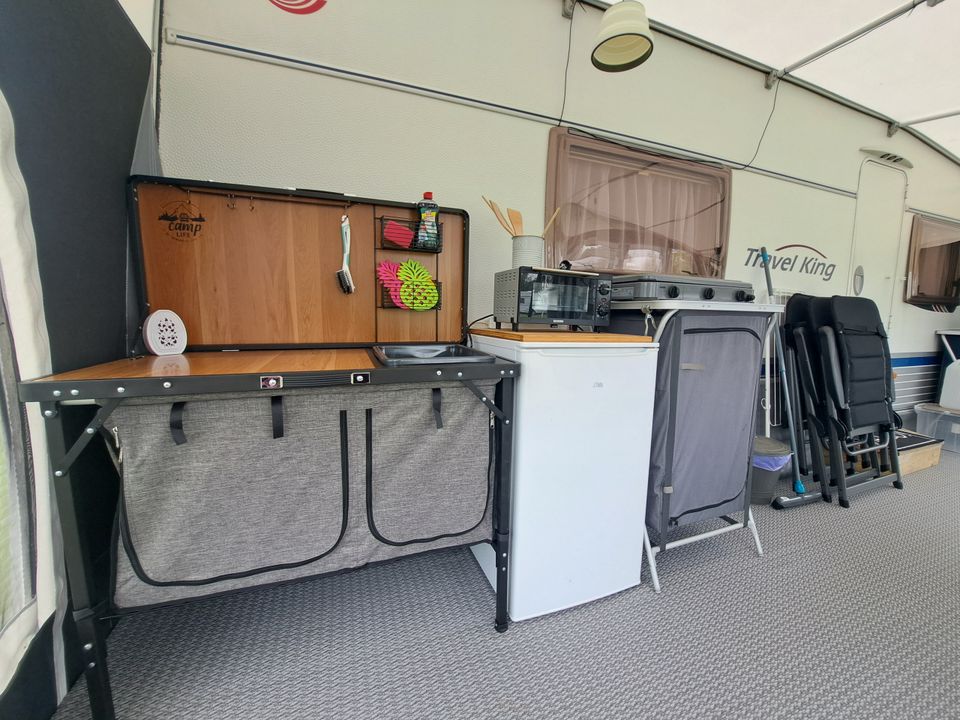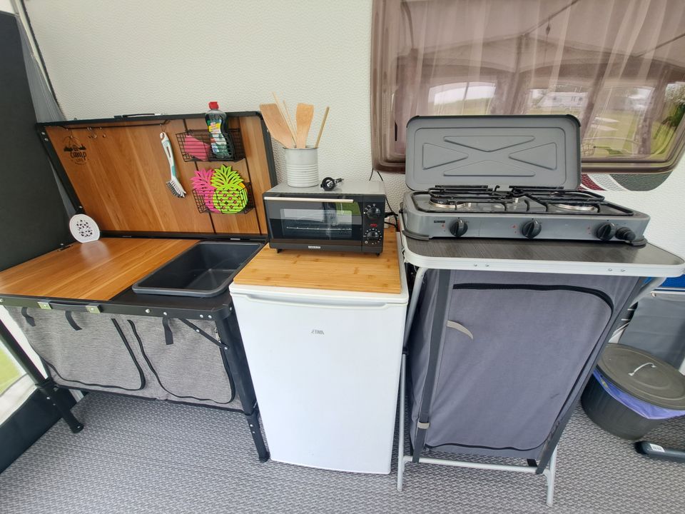 Volledig ingerichte caravan met voortent, ideaal voor vier personen