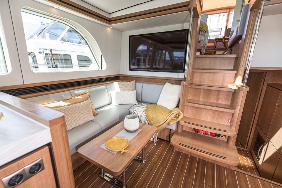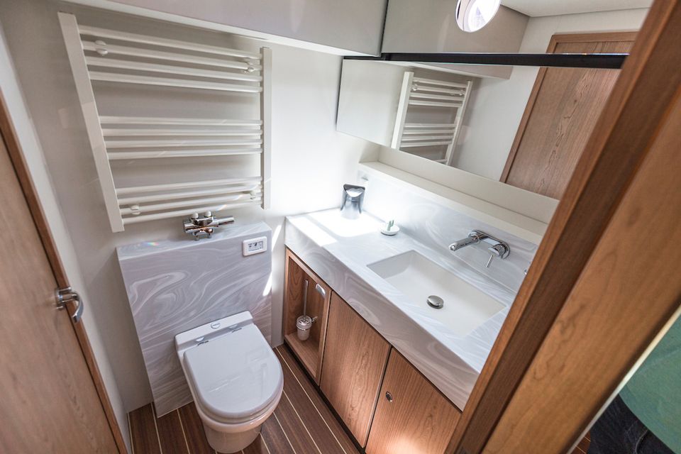 Chique, dat is de Linssen Grand Sturdy 450 Variotop zeker! een uiterst stijlvol jacht, royaal ingedeeld met twee fijne xxl-hutten. Elke hut beschikt over een eigen badkamer met douche en een eigen toilet. De verfijnde afwerking en het sfeervolle interieur geven u een uiterst prettige beleving. In de salon is een eethoek tegenover de goed uitgeruste keuken, welke beschikt over een kookplaat, bakoven, koelkast, een vaatwasser en een complete keukenuitrusting. Verder zijn er nog twee koelkasten, een geïntegreerde koffiemachine voor verse bonen en bovendien een wijnklimaatkast! Voor TV-liefhebbers is er in de salon bij de sofa een enorme televisie, dit is een smart-tv. Omdat er 4-G internet aan boord is kunt u tevens b.v. Netflix ontvangen. In één van de badkamers bevindt zich een was-droog machine. Ook is er een krachtige generator aanwezig, zodat je altijd onafhankelijk bent van externe stroomvoorzieningen.