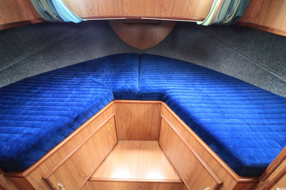 Indeling: In het voorschip vind je een douche met wastafel en een elektrisch toilet. Voorin zijn twee ruime eenpersoonsbedden. De sfeervolle salon heeft een L-vormige zithoek waarvan je de bank eenvoudig kunt ombouwen tot een tweepersoonsbed. De ruime keuken is compleet uitgerust voor 6 personen, met onder andere een 4-pits gasfornuis, koelkast en koffiezetapparaat. In de achterkajuit slaap je comfortabel in een groot tweepersoonsbed. Daar is ook een tweede elektrisch toilet met wastafel aanwezig.
