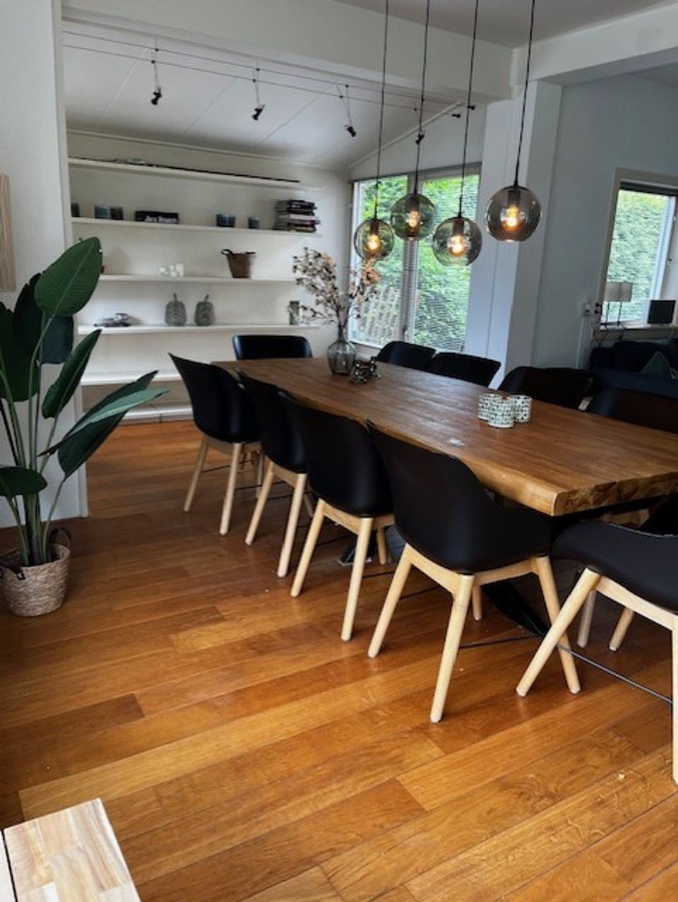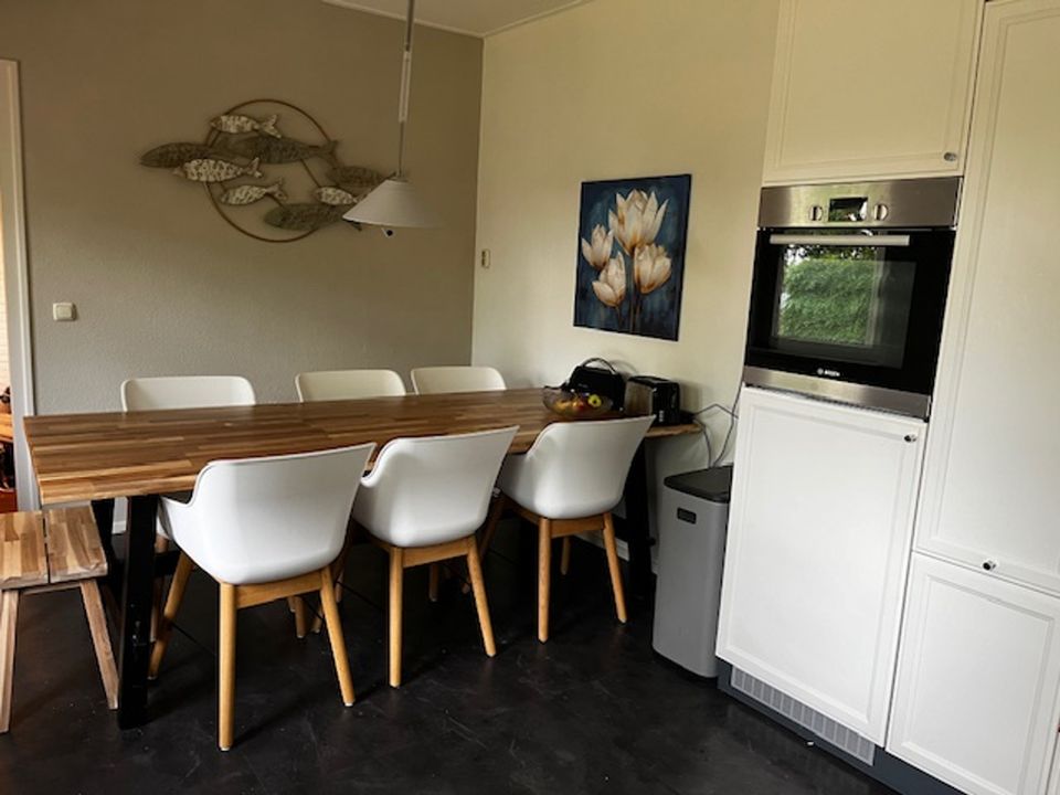 Het huis ligt aan het water met eigen aanlegsteiger en biedt een tuin met veel privacy aan voor- en achterkant. Aan beide zijden staan tafels om buiten te eten, en er is een loungeset aan het water. De ruime woonkamer heeft een eettafel met 10 stoelen, twee zithoeken (een met tv, een bij de openhaard), en is gescheiden van de goed uitgeruste keuken. Boven zijn 4 slaapkamers en een nieuwe badkamer: 3 kamers met elk 2 boxsprings, een kleine kamer met een stapelbed (bovenste bed niet geschikt voor volwassenen) en beneden staat een slaapbank.