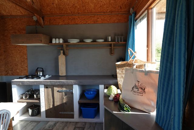 Wanneer je wel wilt kamperen, maar dit liever niet in een tent doet, dan is deze vakantiehut de perfecte uitkomst! De hut staat dicht bij de natuur aan een brede sloot met daarin verschillende waterplanten. De veranda die bij je hut hoort is een knusse en gezellige plek met onder andere een hangmat en picknicktafel. Wanneer je de hut binnenloopt zie je in een oogopslag alles wat je nodig hebt, drie stapelbedden, een keuken en een gezellige zitruimte met een grote tafel. Het sanitair bevindt zich op loopafstand van de hut.