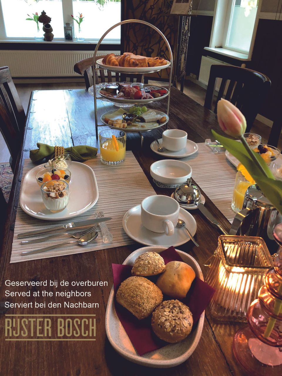 -Start de dag goed, met een heerlijk vers ontbijt. Voor de ontbijtservice hebben we een samenwerking met de overburen Brasserie Rijsterbosch. Ontbijt is voor € 15 p.p. apart bij te boeken en wordt geserveerd bij de overburen.