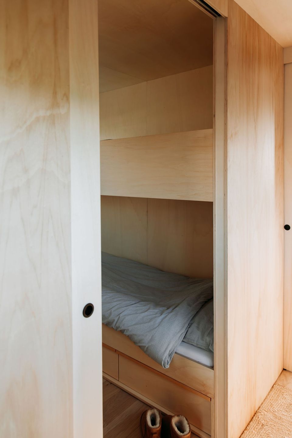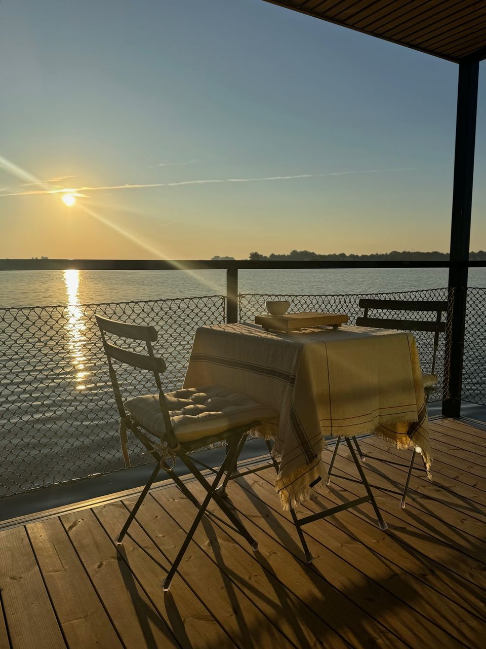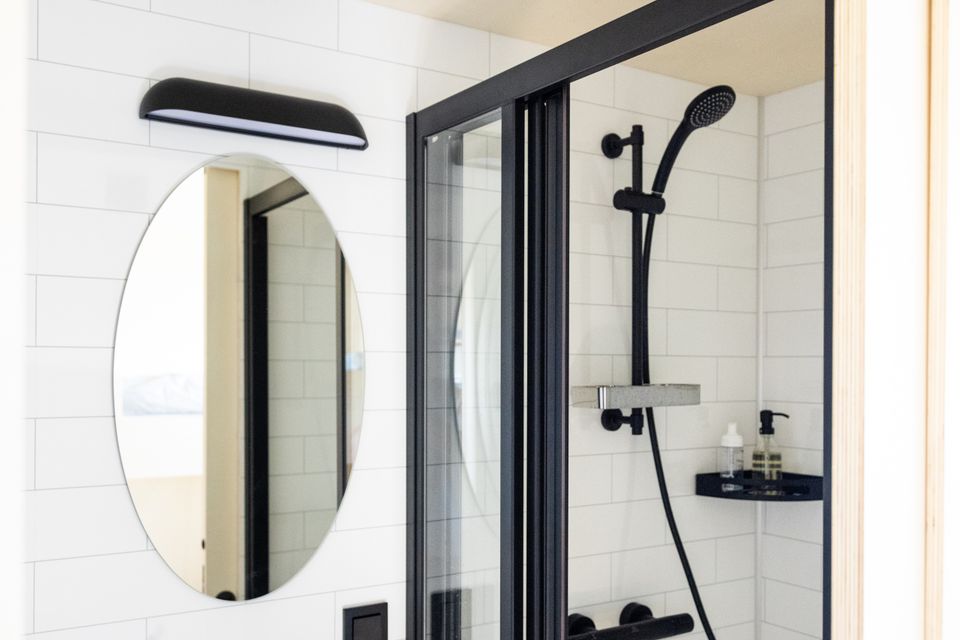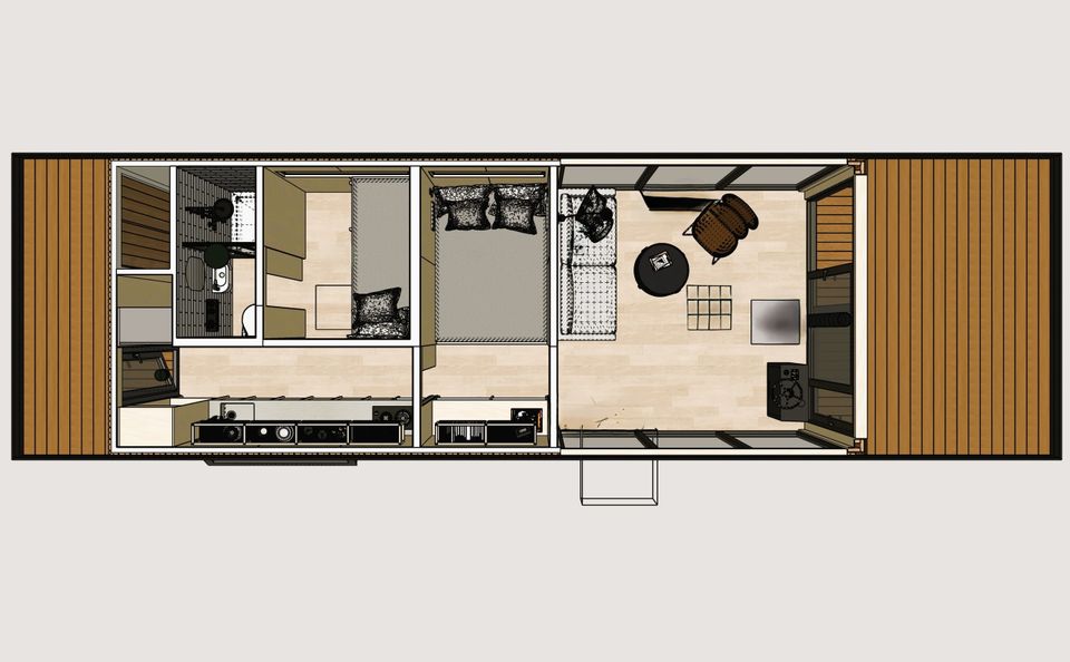 Prachtig drijvend vakantiehuis op een privé eiland! Het slaapgedeelte beschikt over een tweepersoonsbed van 140 × 200 cm dat met schuifdeuren kan worden afgesloten voor extra privacy. Nachtlampjes en een handig hangend opbergvak maken het tot een knusse en praktische ruimte. In de tweede slaapkamer staat een stapelbed van 80 × 200 cm, en alle bedden zijn voorzien van opberglades voor extra gemak. De lounge biedt een panoramisch uitzicht dankzij de ramen van vloer tot plafond, die de natuur als decor naar binnen halen. Een comfortabele Artifort-bank nodigt uit om te ontspannen, terwijl een verplaatsbare tafel zowel geschikt is om aan te dineren als voor andere doeleinden. De keuken is volledig uitgerust en efficiënt georganiseerd. Een ingebouwde koelkast met vriesvak, een mini-kookplaat en een geïntegreerde gootsteen maken koken eenvoudig. Het slimme opbergsysteem biedt volop ruimte dankzij het 25 × 25 opbergsysteem, gecombineerd met lades en kasten onder het aanrecht. De badkamer, hoewel compact, is volledig uitgerust met een comfortabele douche, een kleine wastafel en een doorspoelbaar toilet. Alles is ontworpen om het verblijf zo comfortabel en aangenaam mogelijk te maken, terwijl de natuur in al haar pracht centraal blijft staan.