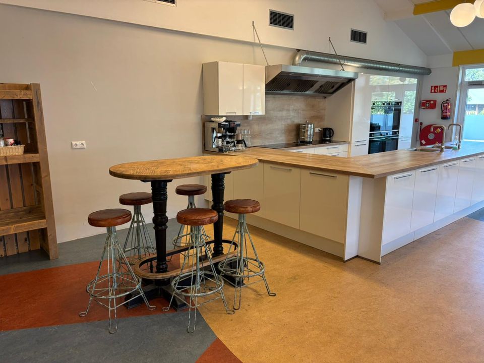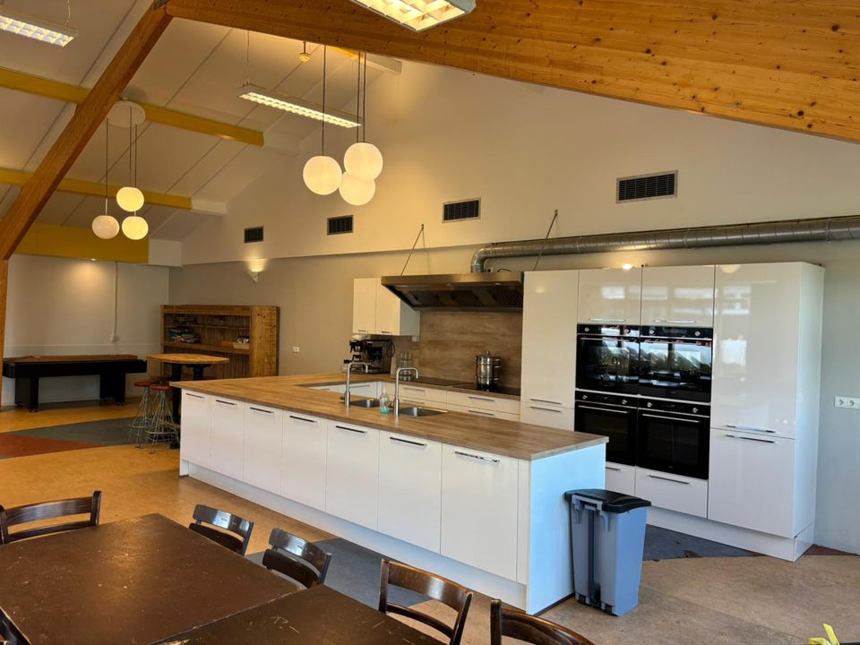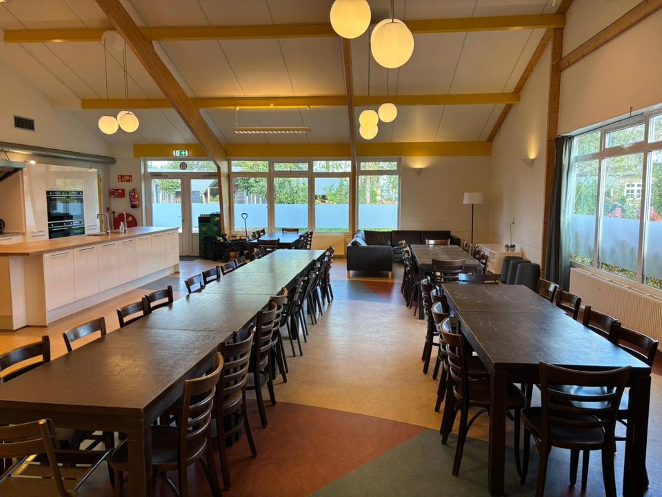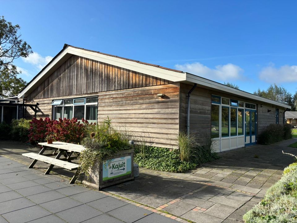 De Kajuit is een groepsaccommodatie voor 42 personen, we verhuren de accommodatie op basis van zelfvoorziening. In de grote gezamenlijke ruimte zit een luxe keuken met alle gewenste voorzieningen. Er zijn bijvoorbeeld twee combi-ovens, twee keer een 6-pits inductiekookplaat en ook twee afwasmachines. De gezamenlijke ruimte is verder ingericht met tafels, stoelen en banken. Mocht u gezellig willen gaan zeilen of sloepvaren dan kan dit ook vanaf deze locatie, we meren de boten voor u aan in het haventje bij de accommodatie en u kunt elk moment van de dag het water op.