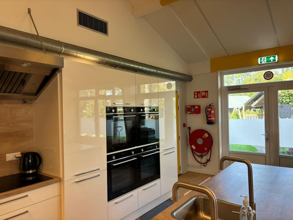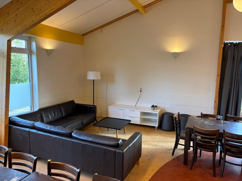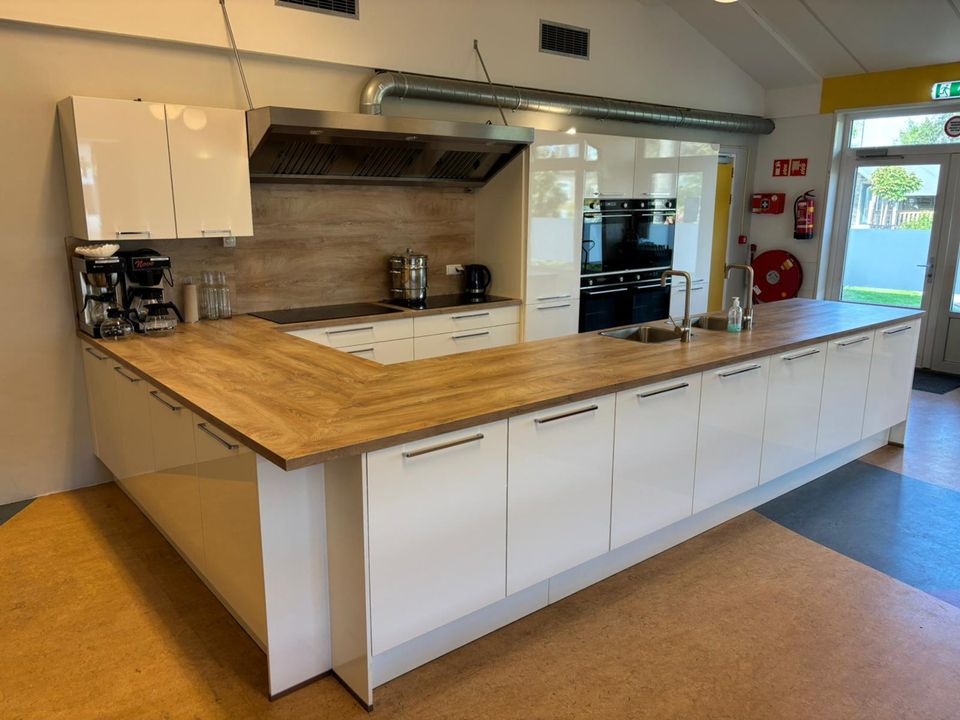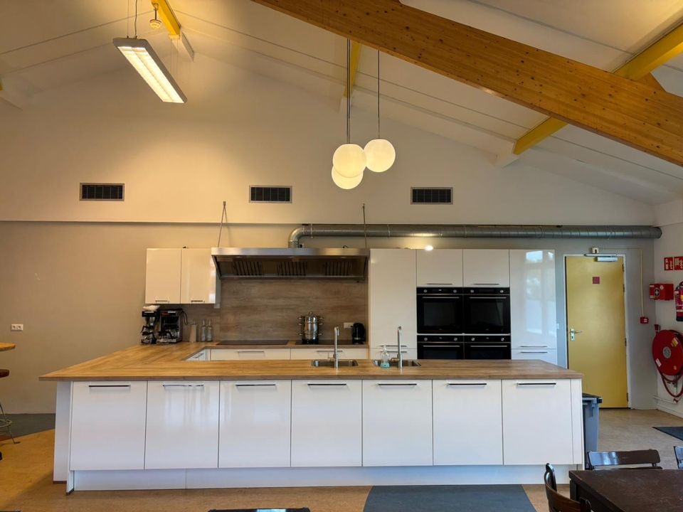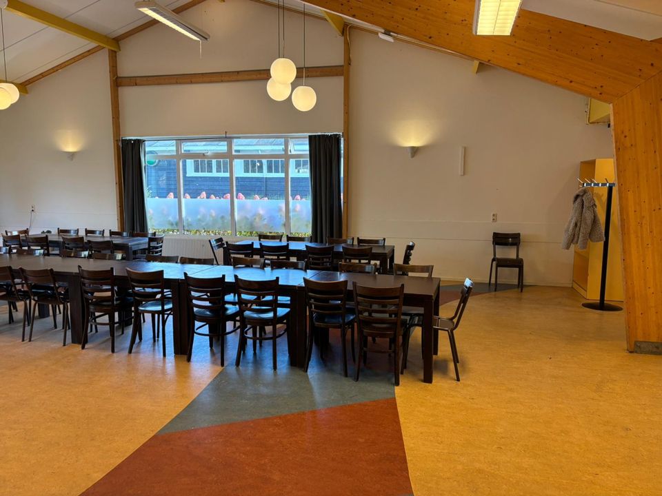De Kajuit is een groepsaccommodatie voor 42 personen, we verhuren de accommodatie op basis van zelfvoorziening. In de grote gezamenlijke ruimte zit een luxe keuken met alle gewenste voorzieningen. Er zijn bijvoorbeeld twee combi-ovens, twee keer een 6-pits inductiekookplaat en ook twee afwasmachines. De gezamenlijke ruimte is verder ingericht met tafels, stoelen en banken. Mocht u gezellig willen gaan zeilen of sloepvaren dan kan dit ook vanaf deze locatie, we meren de boten voor u aan in het haventje bij de accommodatie en u kunt elk moment van de dag het water op.