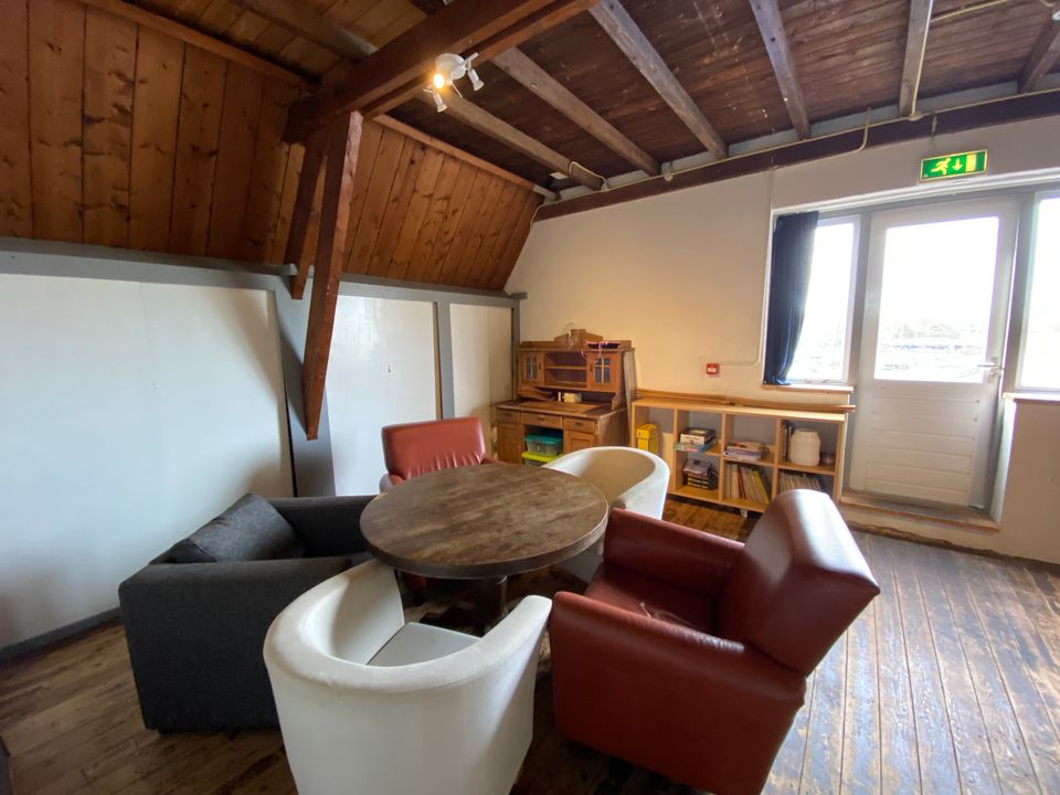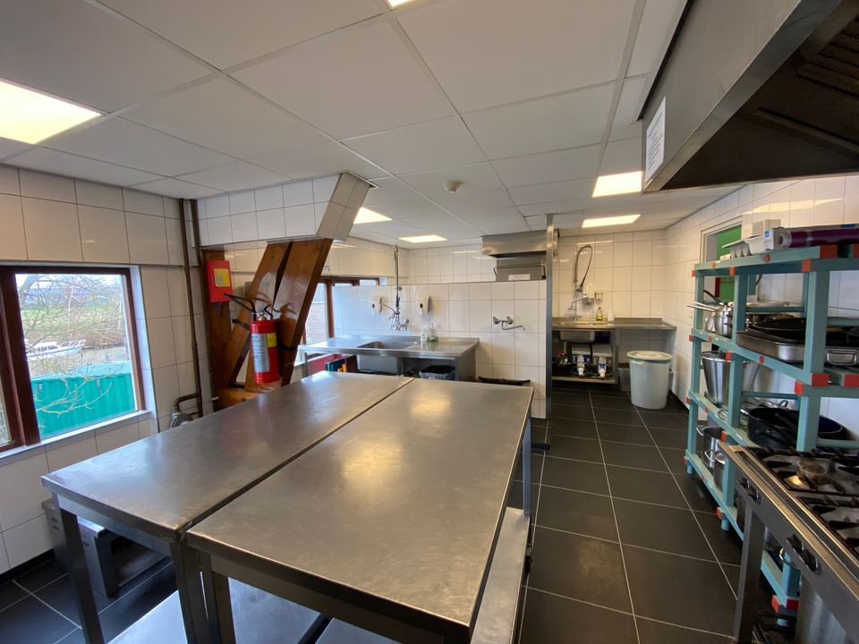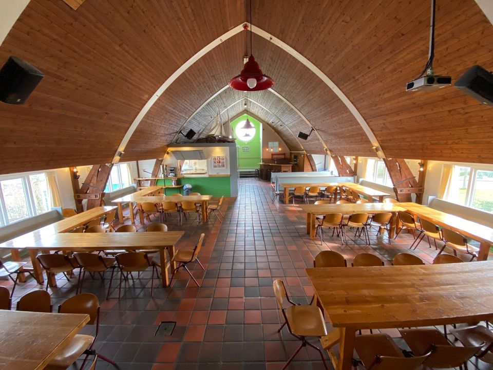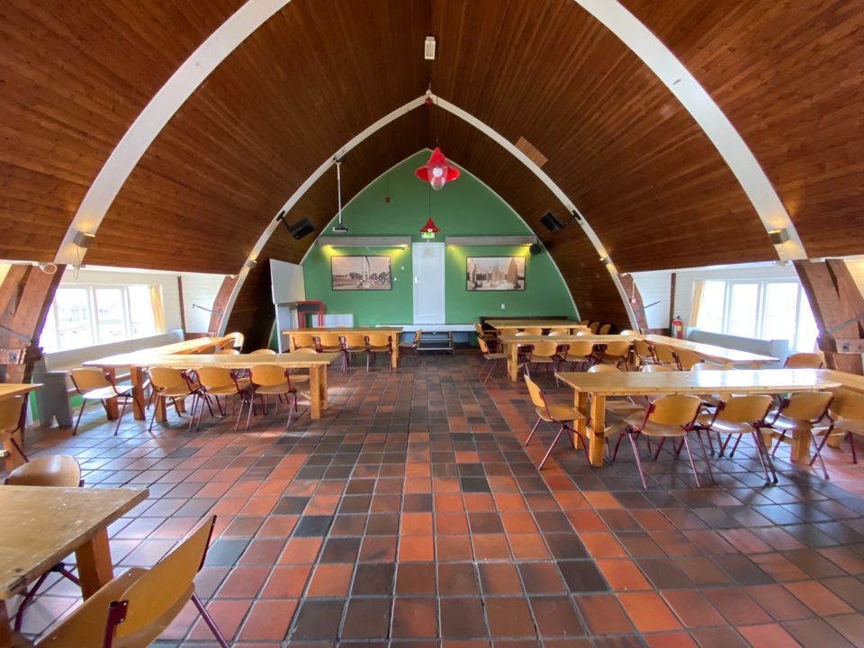 Deze unieke groepsaccommodatie is gerealiseerd in een voormalige kerk. De complete benedenverdieping is zo gemaakt dat hier 11 slaapkamers zijn, genoeg voor maximaal 68 personen. Er zijn in de accommodatie 12 douches en 6 toiletten, deze zijn eveneens gelegen op de begane grond. Op de eerste verdieping, in de nok van de kerk, is een grote woonruimte gerealiseerd, met onder andere een ruime, compleet uitgeruste keuken. Er is ook een bar en diverse tafels met stoelen. Rondom de accommodatie is een terras en speelveld. Door de ligging aan het water stap je zo op je bootje om de omgeving vanaf het water te verkennen!