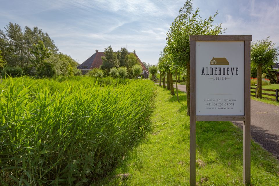 In een voormalige stelpboerderij in Workum vind je Aldehoeve-logies. De boerderij ligt in een rustige woonbuurt, op een groot parkachtig perceel, op minder dan 5 min. lopen van het gezellige centrum van Workum. In de boerderij zijn drie moderne en comfortabele appartementen gerealiseerd waarvan twee geschikt zijn voor vier personen en één appartement is geschikt voor zes personen. De appartementen bevinden zich aan de achterzijde van de boerderij, in de vroegere koeienstallen. Alle appartementen hebben een eigen ingang met terras. Het eigenaarsgezin woont in het voorhuis van de boerderij.