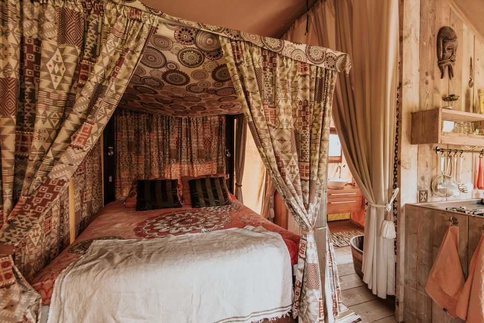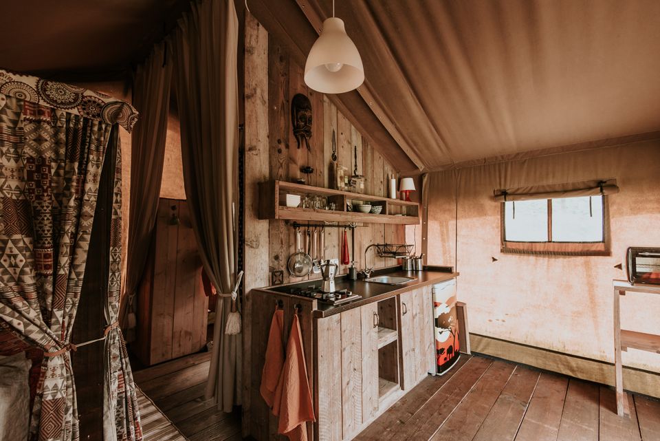 In safaritent 'Out of Africa' kom je helemaal terecht in de sfeer van Afrika doordat deze tent ingericht is in een koloniale stijl. Deze safaritent is voorzien van een tweepersoonsbed, een volledig ingerichte keuken, een goede regendouche en apart toilet. Op een koele avond kun je gebruik maken van de fijne gaskachel. Voor de safaritent is een mooie veranda waar je lekker buiten kunt eten en van de zon kunt genieten. Ideaal dus!