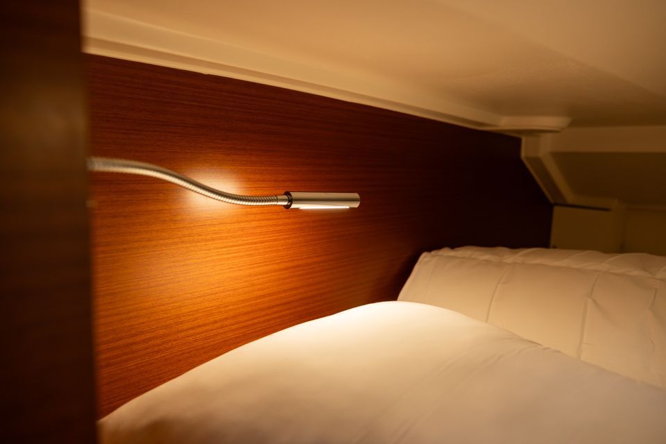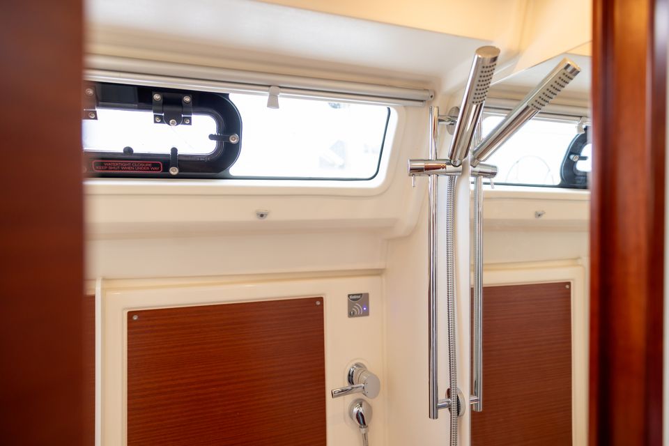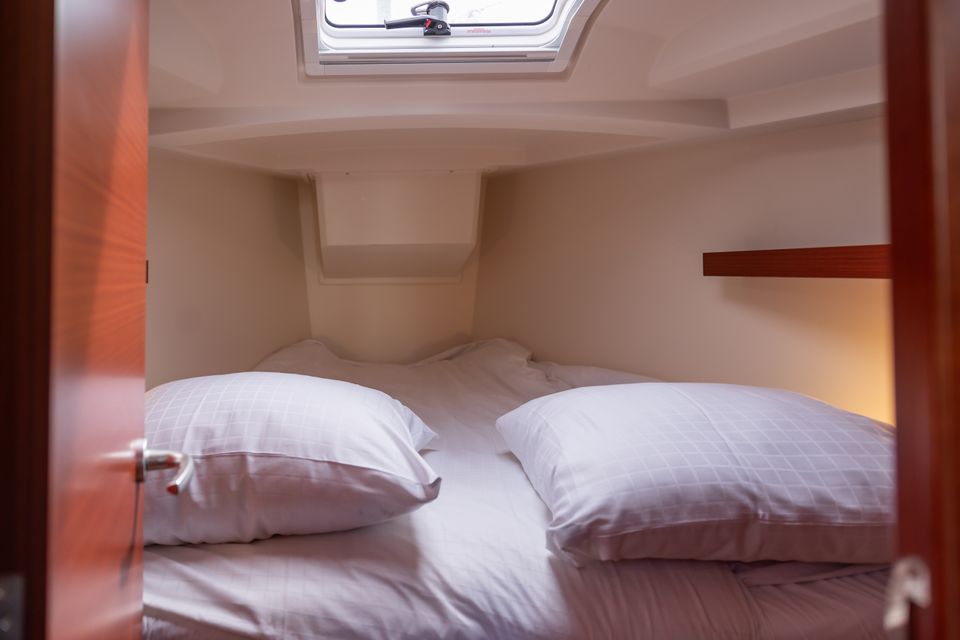 De ruime kuip met tafel en het zwemplatform met trapje maken het verblijf aan boord extra plezierig. Of je nu aanmeert in een haven of voor anker gaat, het kan allebei. Binnen vind je alle gemakken voor een fijn verblijf: een tweepits kooktoestel, koelkast, douche, boiler, pomptoilet én navigatiehulpmiddelen zoals een kaartplotter, marifoon en AIS.