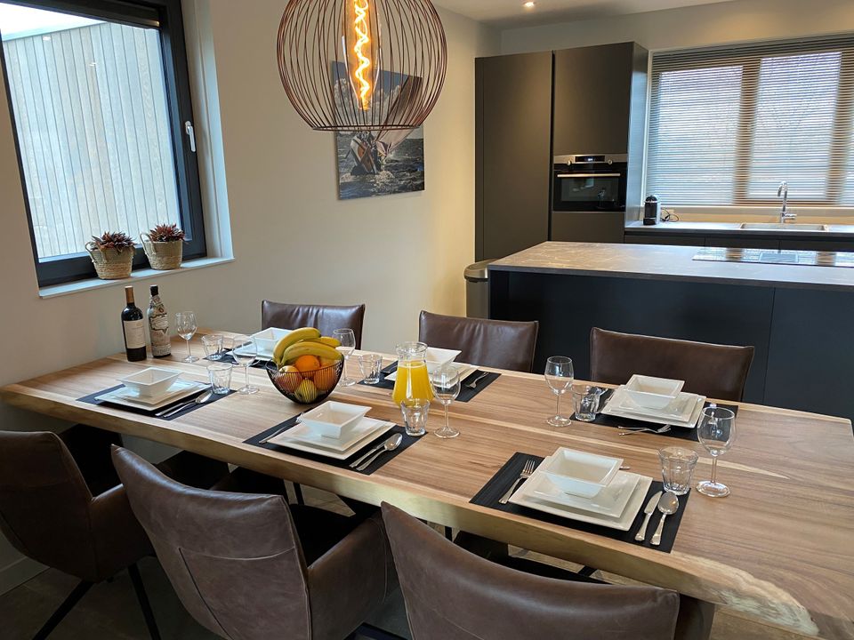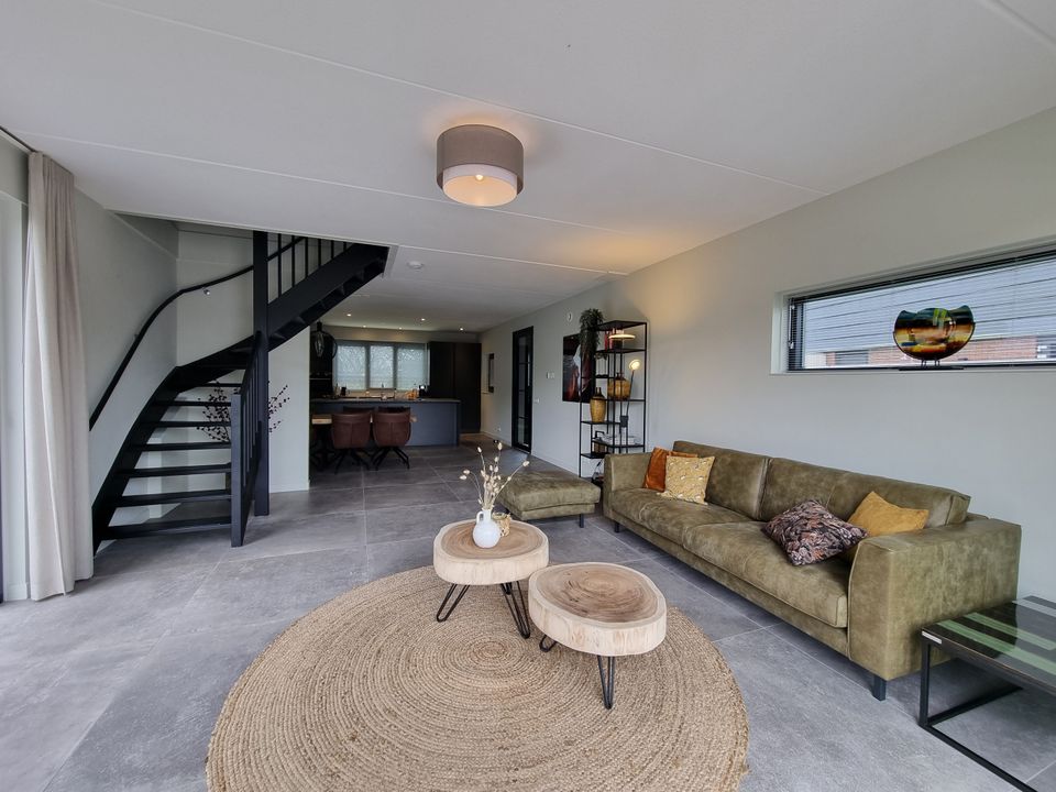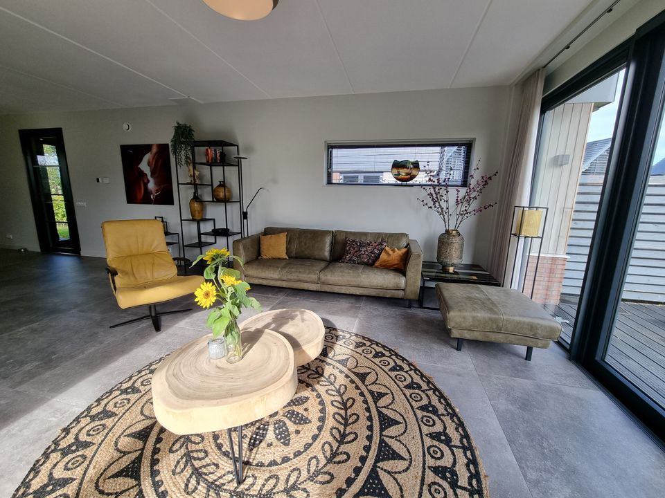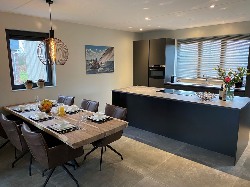 Wanneer je deze luxe watervilla met eigen aanlegplaats aan het water binnenstapt ervaar je meteen de rust en ruimte in het huis. De keuken is erg ruim opgezet waardoor je gezellig met het hele gezelschap kunt koken. Ook de woonkamer (xxl) is ruim, met genoeg zitplaatsen voor iedereen. Vanuit het zitgedeelte heb je een heerlijk uitzicht over het water en de jachthaven. Via de woonkamer stap je de tuin in die direct aan het water gelegen is. Hier kun je je eigen boot aanmeren, maar je kunt op het park ook een boot huren. Wanneer je naar de eerste verdieping van de woning gaat, zie je drie slaapkamers. Twee slaapkamers hebben een tweepersoons boxspring-bed en een slaapkamer heeft een stapelbed. Op deze verdieping vind je twee badkamers en een apart toilet.