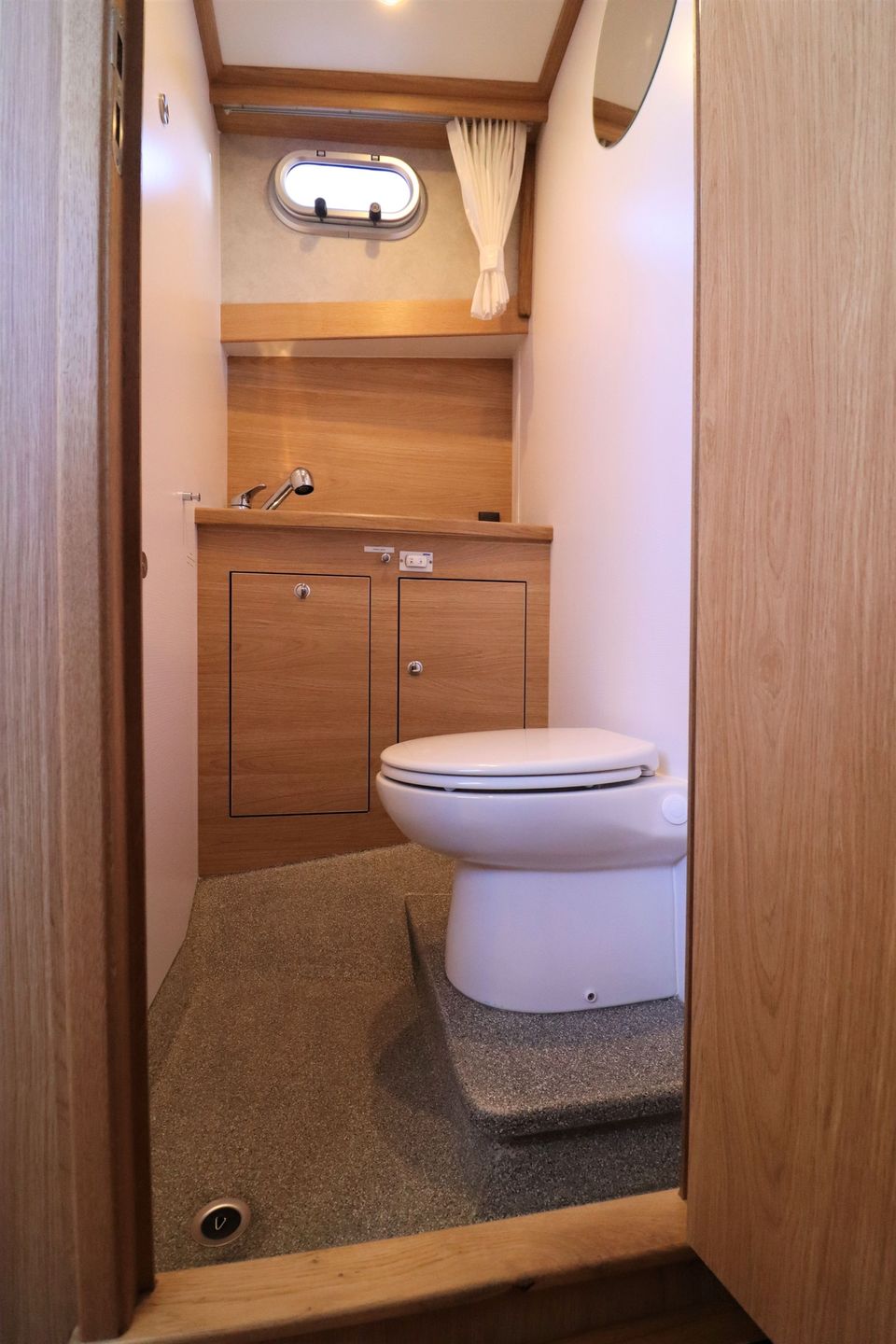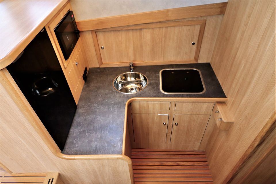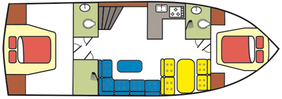 Indeling: In de voorpunt vind je een comfortabel tweepersoonsbed. Aangrenzend ligt een badkamer met elektrisch toilet, wastafel en handdouche. De ruime keuken is volledig ingericht voor 4 personen en beschikt over een 3-pits gaskooktoestel met afzuiger, koelkast, combimagnetron, koffiezetapparaat én een vaatwasser. De sfeervolle salon is voorzien van een L-vormige zithoek en tv. In de achterkajuit bevindt zich een groot tweepersoonsbed. Ook hier is een tweede badkamer aanwezig met elektrisch toilet, wastafel en een separate douche.