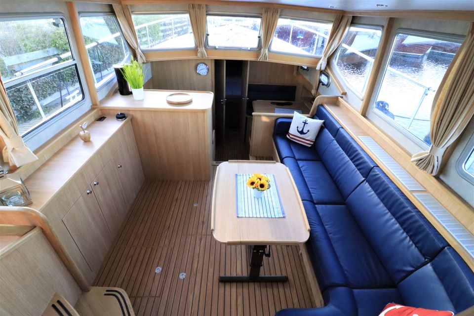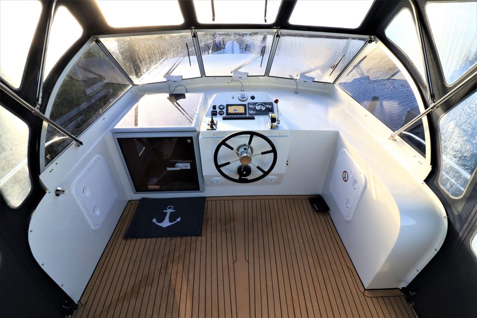 Dit klassiek gelijnde en degelijk gebouwde motorjacht uit 2021 biedt volop ruimte en comfort voor 4 personen. Dankzij de krachtige 6-cilindermotor en de boeg- én hekschroef is het schip eenvoudig te varen. Door de geringe diepgang kun je ook ondiepere wateren verkennen.