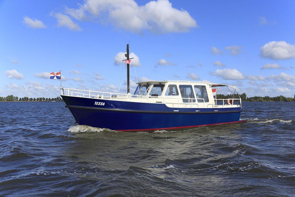 De Monty Bank Trawler 'Tessa' is een comfortabele boot voor 2 personen. De Boot heeft een binnen- en buitenstuurstand. Ideaal voor het manoevreren, aan- en afleggen en om te kunnen genieten van het mooie weer. Bij slecht weer kun je heerlijk droog en warm binnen staan en alsnog genieten van de vrijheid op het water. Er is een slaapkamer voorin met een 2-persoonsbed, een apart toilet en douche en een kleine keuken. Kortom, de boot is van alle gemakken voorzien. Daarnaast is deze boot ook gemakkelijk te bevaren met boeg- en hekschroef. Op het achterdek kun je genieten van de panoramische uitzichten die je tegenkomt op de Friese Meren.