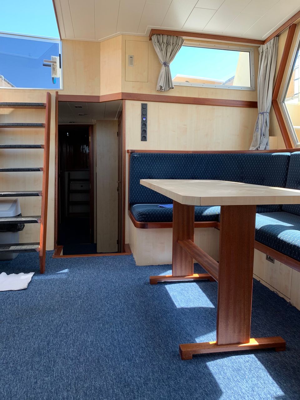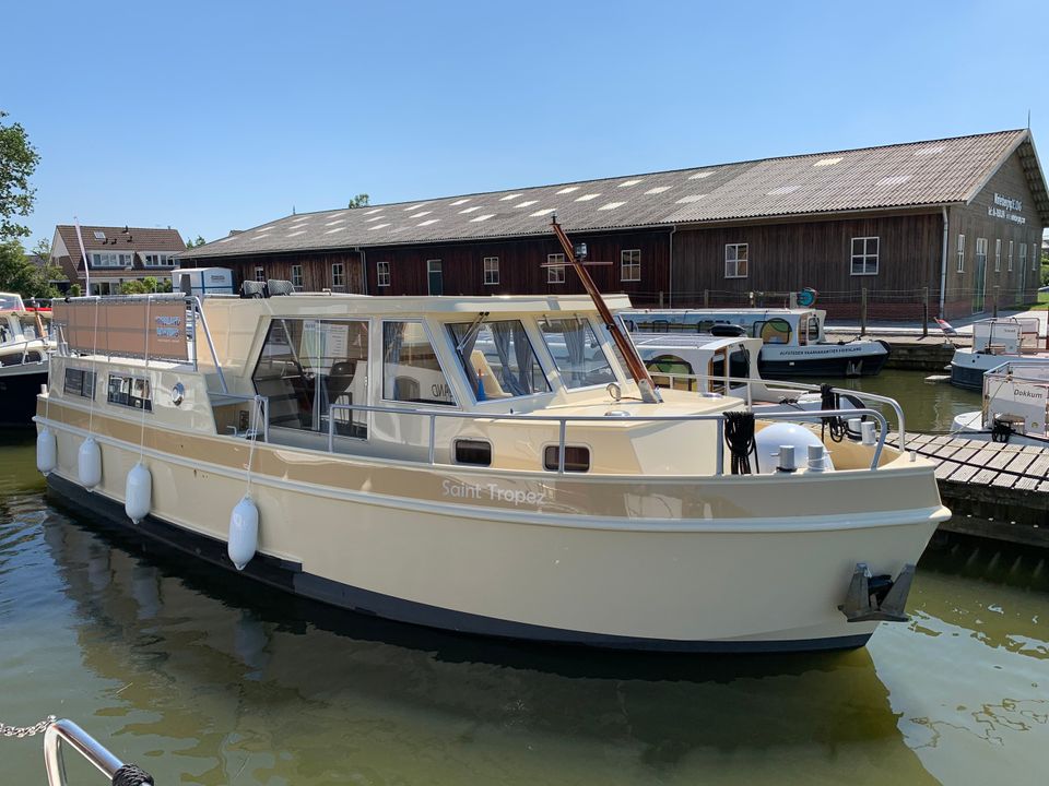 De Denautic St. Tropez heeft een ruim en modern interieur met een lichte houtafwerking. De salon beschikt over een binnenstuurstand en een comfortabele zithoek. De boot heeft een goed uitgeruste keuken, twee douches en twee toiletten. Er zijn zes vaste slaapplaatsen, waardoor er voldoende ruimte is voor gezin, familie of vrienden. Boven bevindt zich een ruim en beschut zonnedek met buitenstuurstand, ideaal om te genieten van het uitzicht. Dankzij de uitgebreide stroomvoorziening en luxe uitrusting ben je volledig zelfvoorzienend en kun je zorgeloos overnachten in de Friese natuur.