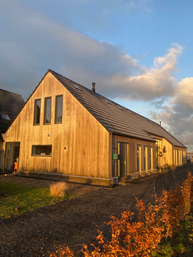 We leven en ondernemen in harmonie met de natuur. Regenwater vangen we op in een oude gierput voor hergebruik, zonne-energie voorziet ons in stroom, en we versterken biodiversiteit met een moestuin, fruitbomen en compost. De schuur is goed geïsoleerd en gebouwd met een nuchtere, duurzame inslag.