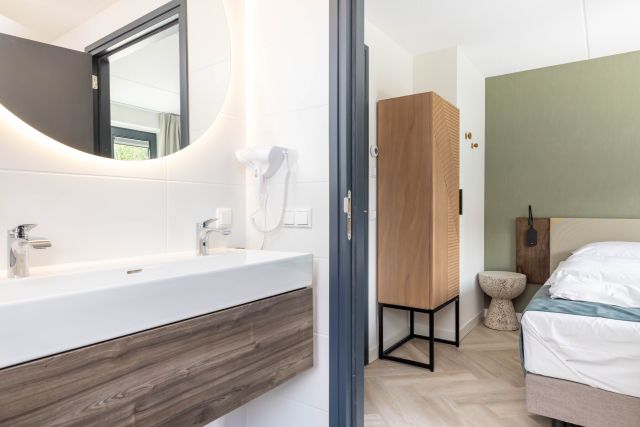 Deze splinternieuwe villa's op Park Wetterhaghe zijn geschikt voor 8 personen. De villa's hebben vier slaapkamers met waarvan een op de begane grond en een met twee kleinere bedden (80x190cm). Er zijn twee badkamers waarvan een op de begane grond en beschikt extra over een sauna of een ligbad. Tijdens je verblijf beschik je over een keuken van alle gemakken voorzien, een mooi ingerichte woonkamer en een terras met tuinmeubilair en ruim gazon met. De villa's zijn gelegen met vrij uitzicht op de poelen en achterliggende landerijen met eigen ligplaats. De ideale plek om er op uit te gaan met een boot!
