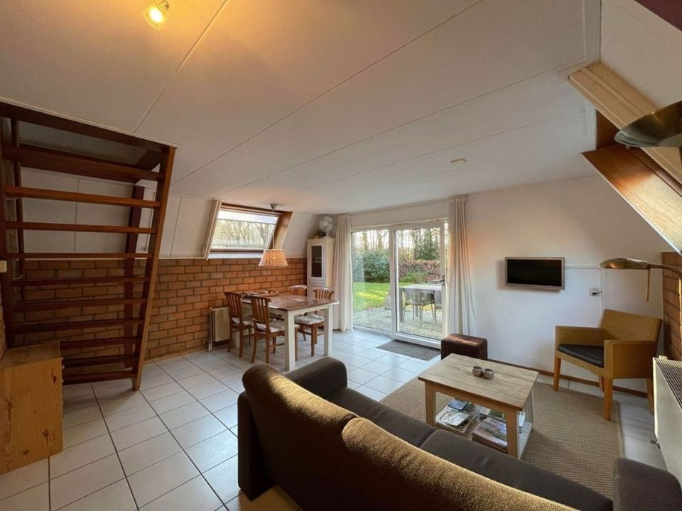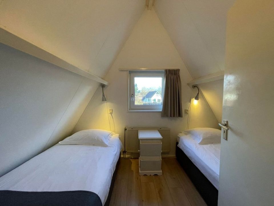 Deze zonnige woningen staan aan de rand van het park aan het bos. Hierdoor kun je helemaal tot rust komen in deze fijne omgeving. De woonkamer is zonnig gelegen en door de schuifpui sta je op mooie dagen zo buiten op het terras. De keuken is open waardoor je altijd verbinding houdt. De badkamer bevindt zich op de begane grond en heeft een douche, toilet en wastafel. De beide slaapkamers van de vakantiewoning zijn op de eerste verdieping.