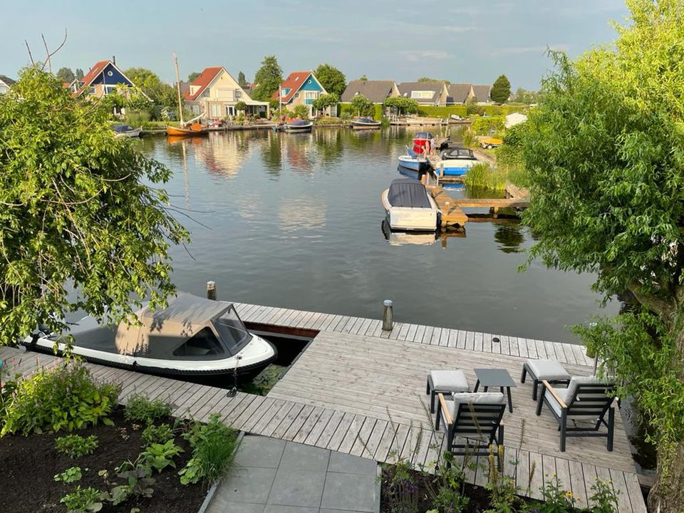 Het vakantiehuis ligt aan het water met een heerlijke ruime aanlegsteiger. Je vaart zo via een bruggetje het Sneekermeer op. Je bevindt je op loopafstand van het centrum van het dorp met winkeltjes, restaurants en terrasjes. In de omgeving kun je genieten van fietstochten, wandeltochten en varen met je eigen of huur boot.