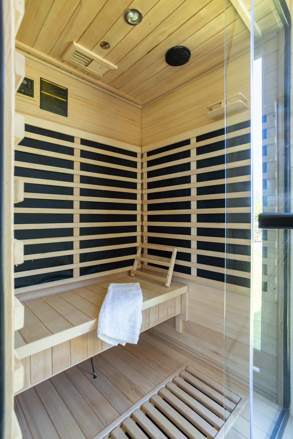 Krûswetter Lodge is een vakantiehuis geschikt voor twee personen. De woning is gelijkvloers en heeft een sfeervolle woonkamer met een comfortabele loungebank, fauteuil en televisiehoek met LED televisie. De eethoek biedt een ruime tafel met comfortabele stoelen en de open keuken met bar is volledig uitgerust met een 4-pits inductiekookplaat, combimagnetron, vaatwasser en een royale koelkast met vriesvak. De slaapkamer is voorzien van een luxe boxspring met topper en een ruime kast. De badkamer heeft een regendouche en een elektrische sauna voor extra ontspanning. Buiten geniet je op het zonnige zuidwestgerichte terras met comfortabele buitenfauteuils, piknicktafel en een parasol.