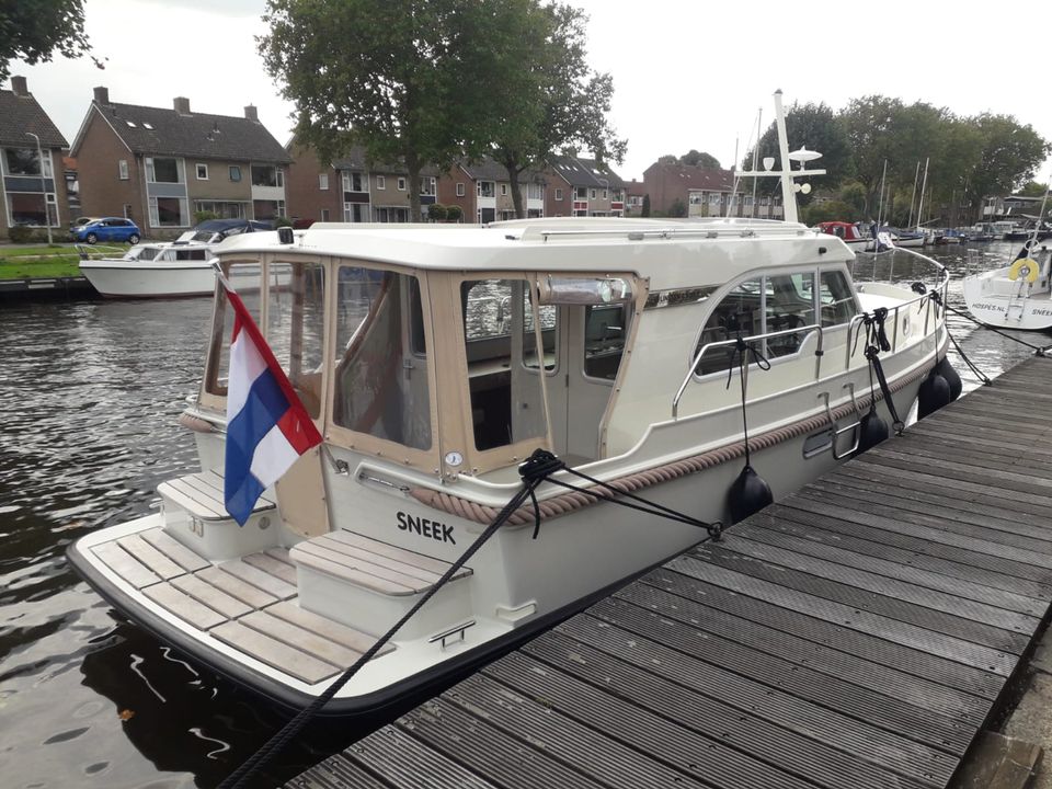 Deze luxe en zeer compleet uitgeruste motorboot huur je vanuit Sneek. Een ideaal jacht voor het varen over de Friese meren, met haar lage doorvaarthoogte (2.40 meter) bereik je de allermooiste bestemmingen. Dit schip is geschikt voor 2 personen. Deze Linssen Grand Sturdy 30.0 Sedan beschikt over veel doordachte details o.a. elektrisch verstelbaar Variodeck schuifdak, verwarmde en afsluitbare) kuip. Stijlvolle salon met veel (dag)licht afgewerkt in prachtige lichte kleurstelling. Zeer uitgebreid besturing- en navigatiesysteem en boeg- en hekschroef. Ruime eigenaars hut met heerlijk bed en separate douche en sanitaire ruimte.