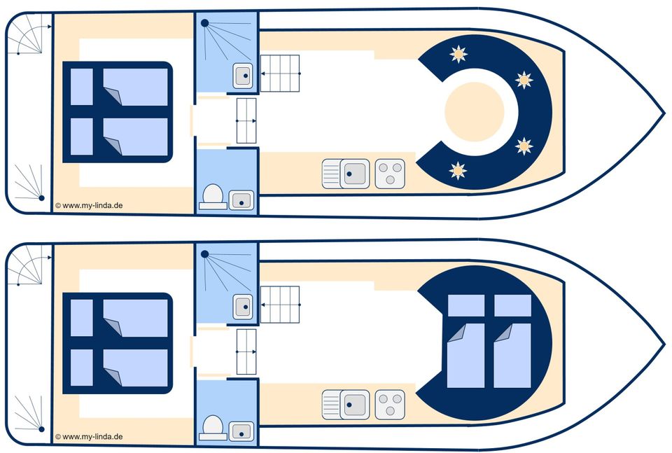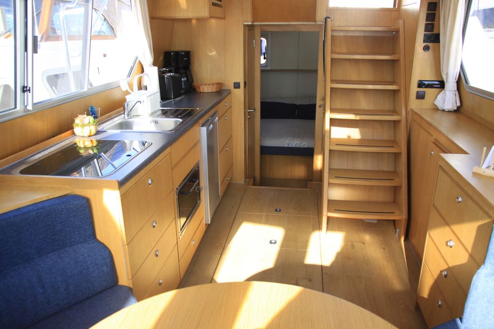 Motorjacht Linda is een stijlvolle en comfortabele motorboot, perfect voor een luxueuze vaarvakantie op de Friese meren. De binnenruimte is slim ingedeeld met een ruime woon- en zithoek, volledig uitgeruste keuken, gezellige slaapvertrekken en een functionele badkamer.
