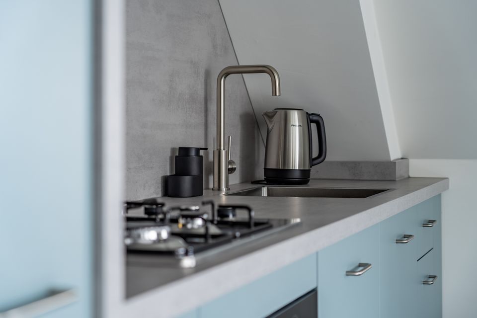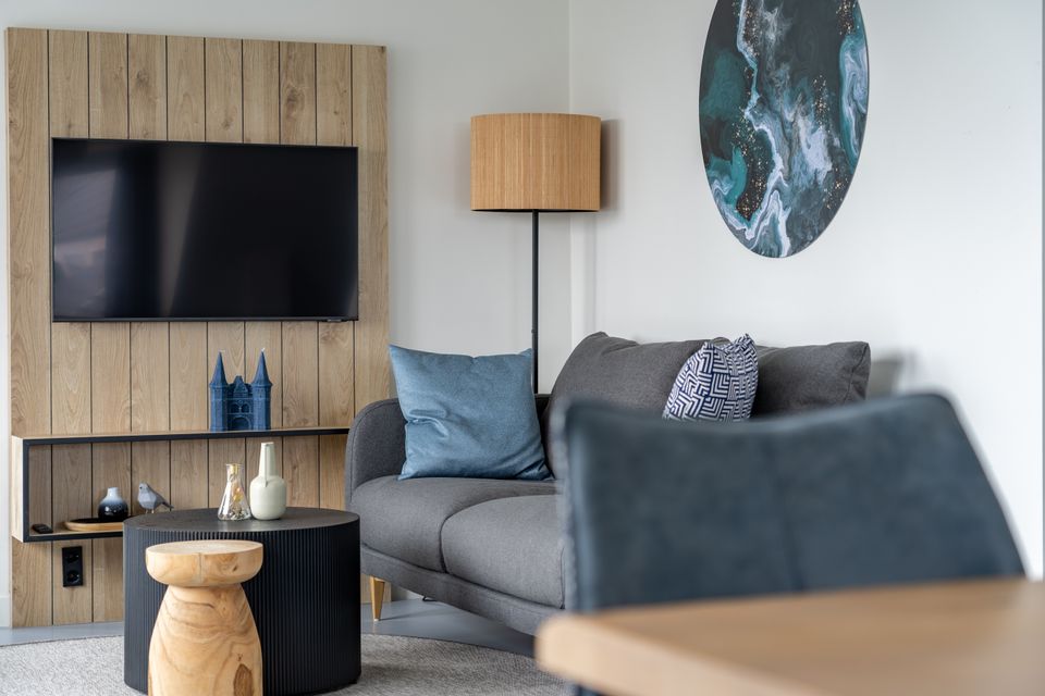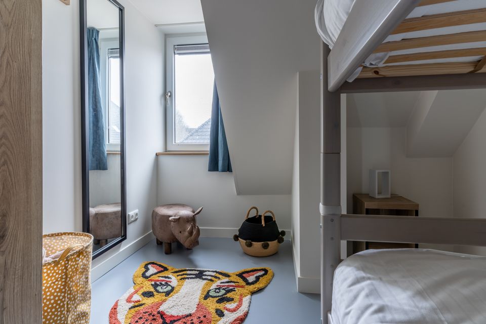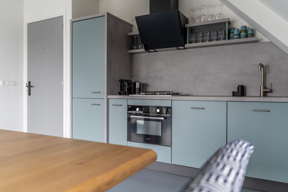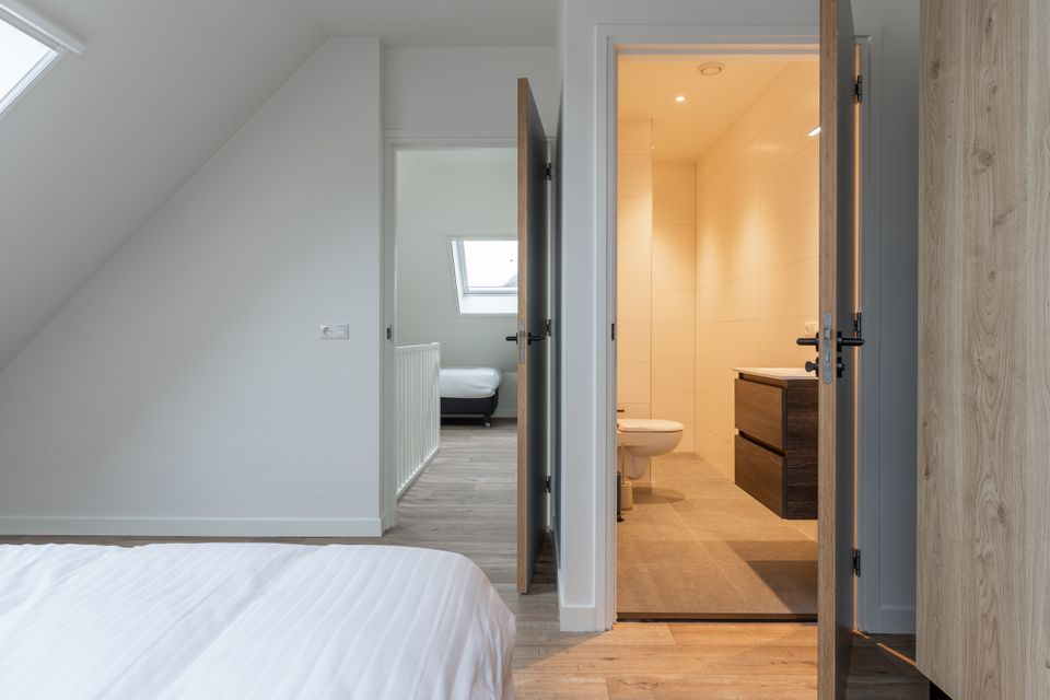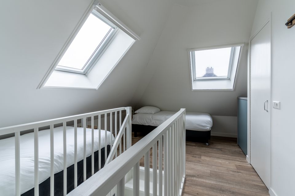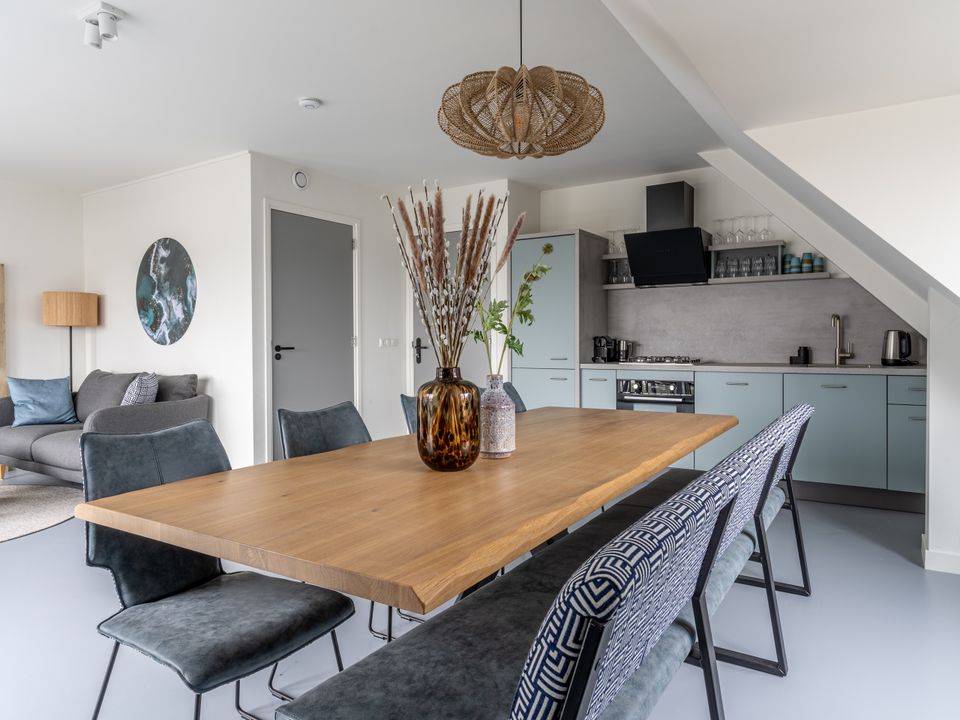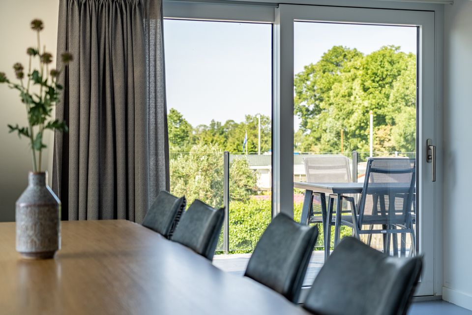 Dit zeer ruime en lichte appartement is geschikt voor maximaal acht personen en heeft drie slaapkamers. Het appartement bevindt zich op de eerste etage van het complex. Op deze etage zijn twee slaapkamers te vinden waarvan een beschikt over een stapelbed en de tweede over twee eenpersoons boxspringbedden. Wanneer je met de trap omhoog loopt zijn er nog twee slaapplaatsen gerealiseerd op de overloop en is er op deze etage nog een slaapkamer met eveneens twee eenpersoons boxspringbedden. Daarnaast beschikt dit appartement over twee badkamers met elk een douche, toilet en wastafel. Er is een ruime woonkamer met zit- en eethoek. De zithoek heeft twee banken en een prachtig uitzicht richting het prinses margrietkanaal. De eethoek is ruim genoeg om hier met 8 personen te tafelen. De keuken is compleet ingericht en beschikt onder andere over een koel-vriescombinatie, combi-oven en vaatwasser. Vanuit de woonruimte stap je gemakkelijk het grote balkon op met bijbehorend meubilair. Ook hier geniet je weer van een ruim uitzicht. Het balkon is zo gelegen dat je 's avonds zon hebt.
