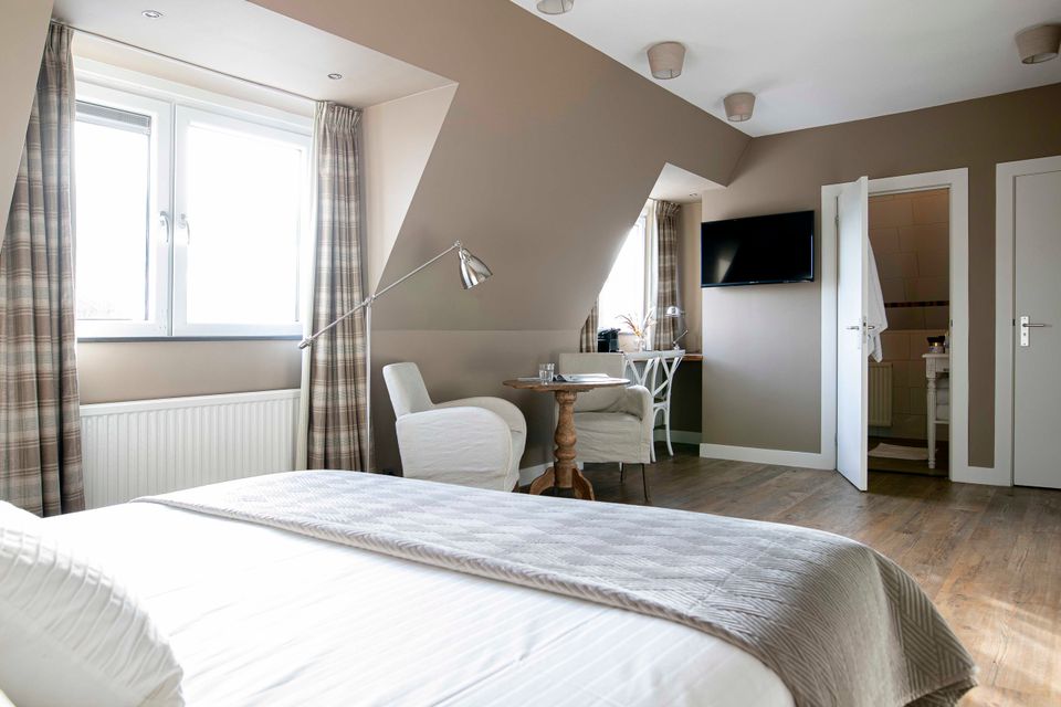 Deze ruime kamer heeft een uitzicht op het dorp Terherne. De kamernaam zegt het al, de kamer is ruim opgedeeld en heeft een tweepersoons boxspringbed. Daarnaast is er een bureau in de kamer, evenals een televisie en een zitje. In de badkamer is een douche, toilet en wastafel. Daarnaast heeft een van de ruime kamers een badkamer met ligbad!