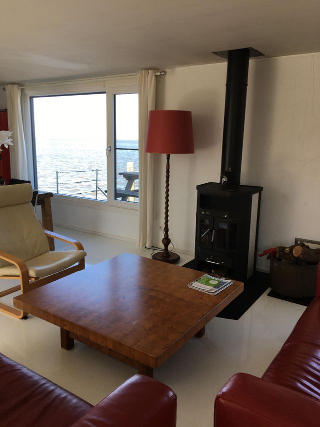Door de grote ramen een prachtig uitzicht. Binnen sfeervol ingericht, en gezellig mede door de houtkachel.