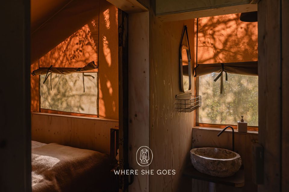 De tenthuisjes hebben een privé buitendouche met warm water. Ook is er optioneel een houtgestookte hottub.