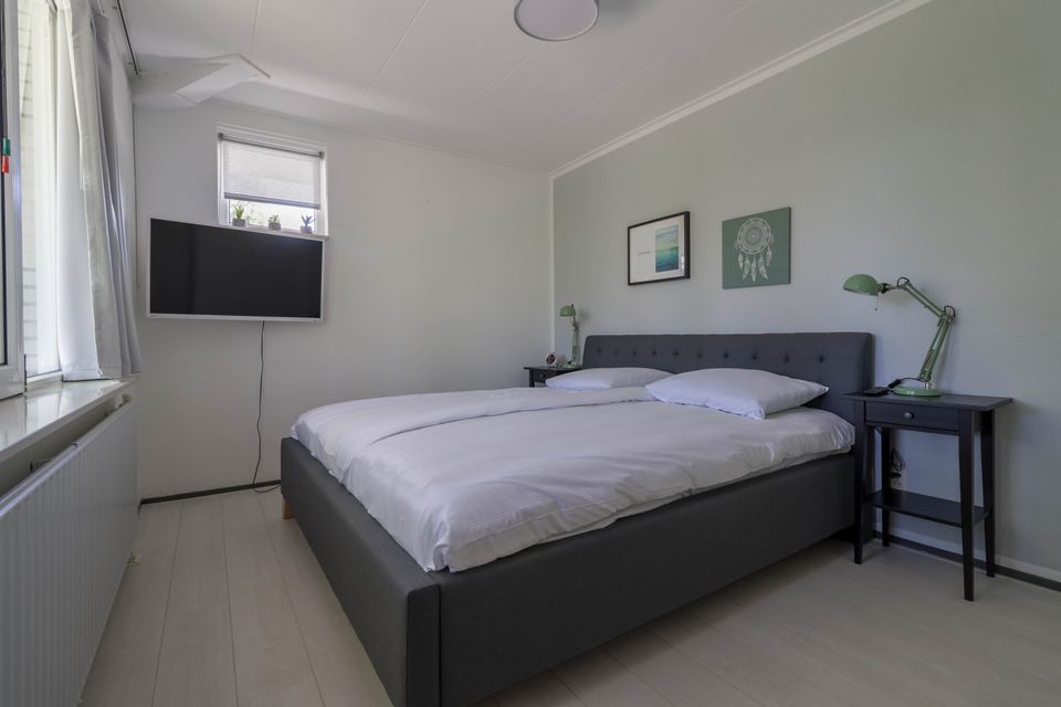 In deze vrijstaande 4-persoons bungalow kun je heerlijk genieten van een ontspannen vakantie. De ruime woonkamer beschikt over een gezellige zithoek met grote flat screen TV en bio-ethanol haard. Aan de voorzijde van de woonkamer bevindt zich een luxe open keuken met eigen bar. Zo kun je de kok van de dag gezelschap houden tijdens het koken. De ruime tuin met terras en eigen aanlegsteiger is te bereiken via twee openslaande deuren. Hier zit je heerlijk tot in de late avonduurtjes. In totaal zijn er twee slaapkamers, waarvan de eerste slaapkamer beschikt over een tweepersoons boxspring. De andere kamer heeft twee losse boxspringbedden. Beide natuurlijk even comfortabel. In de badkamer kun je je heerlijk opfrissen of helemaal tot rust komen. Deze beschikt namelijk over een fijne stoomdouche cabine en Whirlpool.