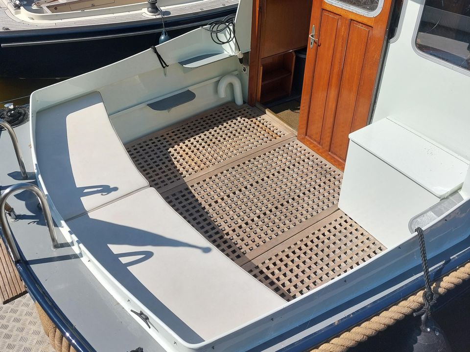 Stap aan boord van deze gezellige tweepersoons motorboot om volop te genieten vanaf het Friese water. In de stuurhut bevindt zich een hoekbank om lekker te genieten en te ontspannen. Ook zit er een bank met lekkere kussens in de kuip. Voor in het schip vind je een tweepersoonsbed, een kombuis en een elektrisch toilet. De boot heeft heteluchtverwarming, zodat het ook in het voor- en najaar lekker vertoeven is aan boord.