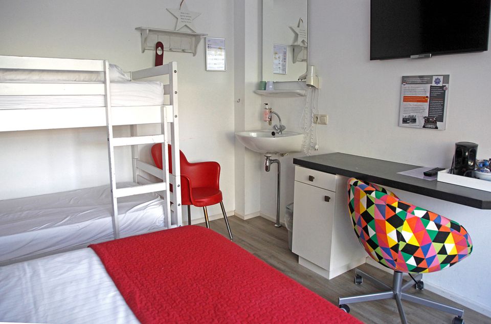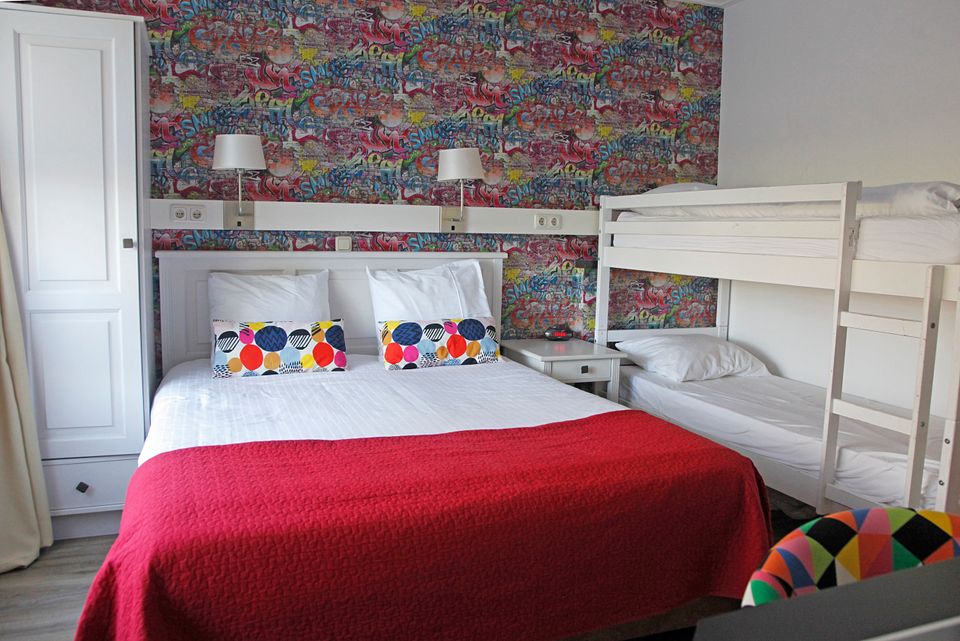 De verhoorkamer is de familiekamer, hier kun je met maximaal drie volwassenen of twee volwassenen en twee kinderen logeren. Je hebt een ruime kamer met een tweepersoons boxspringbed en een stapelbed. Op de gang vind je een eigen badkamer met douche, toilet en wastafel, deze hoef je niet met de andere gasten te delen. In de kamer staat een gezellig zitje, bureau en mogelijkheden om een kopje koffie of thee te zetten.
