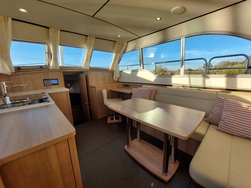 Een ideaal jacht voor het varen over de Friese meren. Met de stuurstand op het bovendek vaar je heerlijk in de buitenlucht, de verstelbare cab…