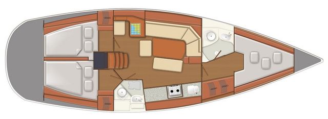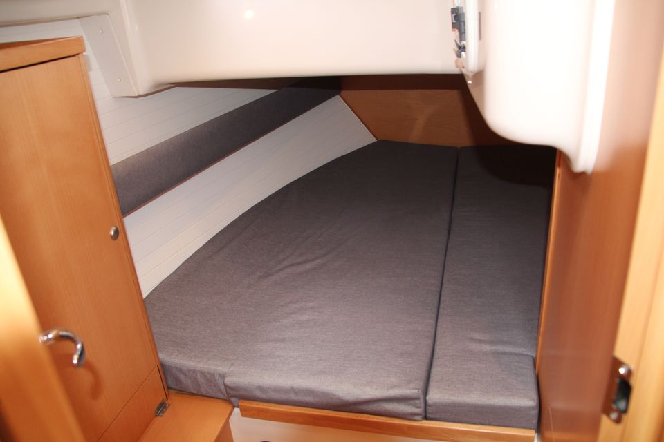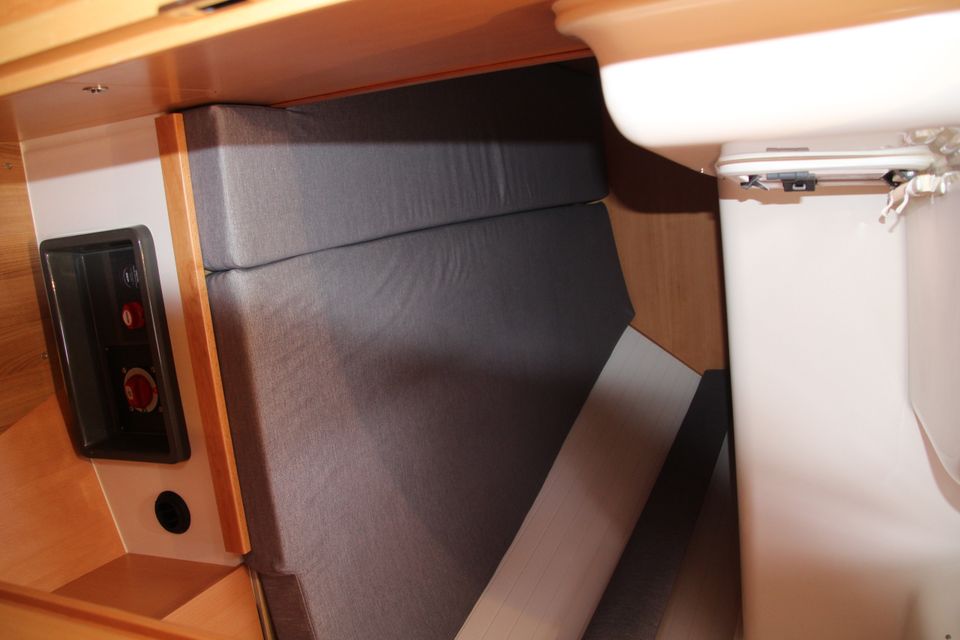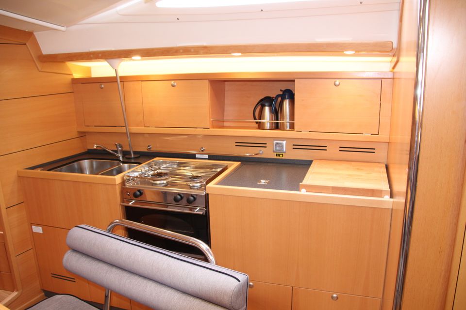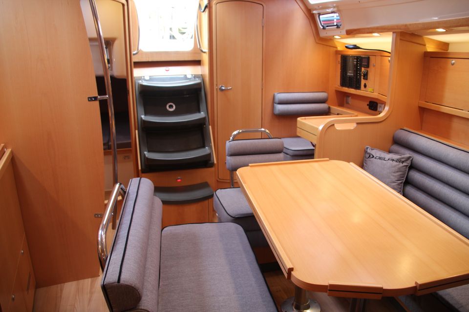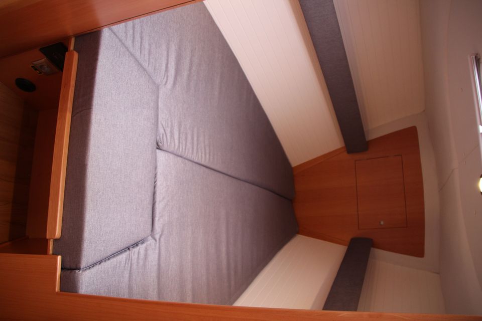Binnen zijn zes vaste slaapplaatsen met de mogelijkheid tot extra slaapplaatsen in de salon. De salon is ruim en heeft veel stahoogte. De kombuis is praktisch ingericht en beide douches beschikken over warm water. Verwarming en 12V en 230V elektra via walstroom zorgen voor een prettig verblijf aan boord. Aan dek heb je een ruime kuip en overzichtelijke bediening vanuit de kuip. Het zwemplateau en het teakdek maken het verblijf buiten comfortabel. Met boegschroef en elektrische ankerlier leg je eenvoudig aan.