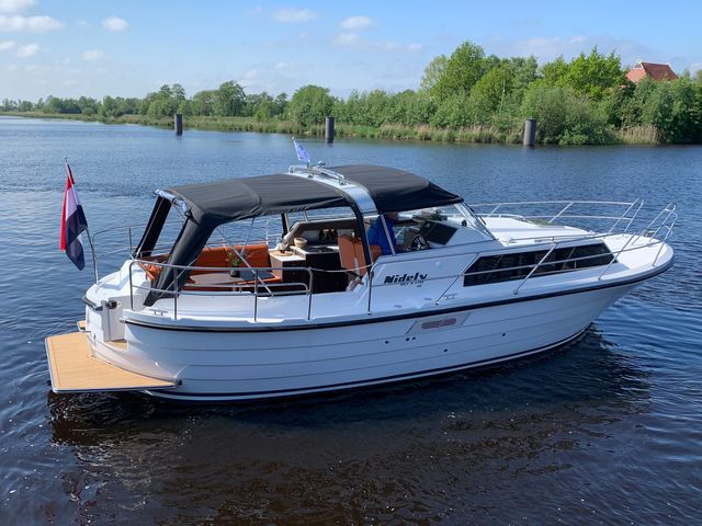 De Nidelv 965 Sira is een gloednieuwe (2025) moderne Noorse spitsgatter met een stijlvolle Nederlandse touch. Geschikt voor 3 personen. Dit open kuip motorjacht is perfect voor avontuurlijke watersporters die comfort en vrijheid willen combineren. Dankzij de brede gangboorden met RVS railing en handgrepen op het kajuitdak beweeg jij en je bemanning je veilig en gemakkelijk over het schip.