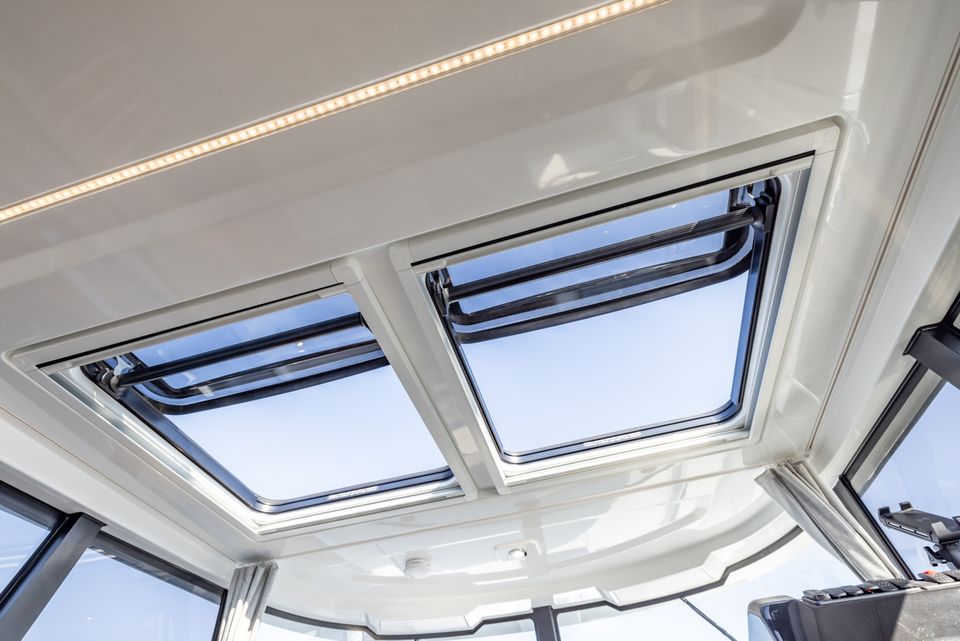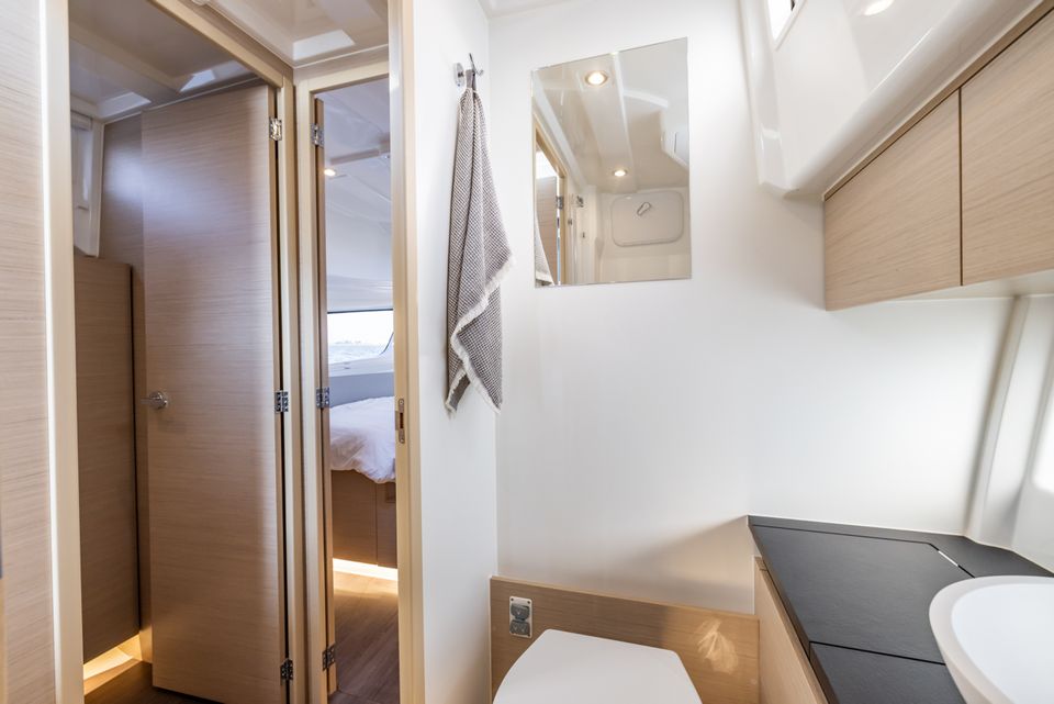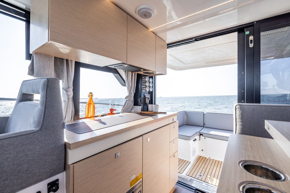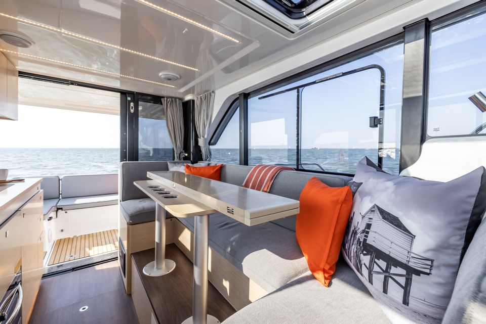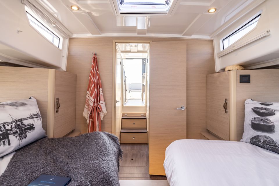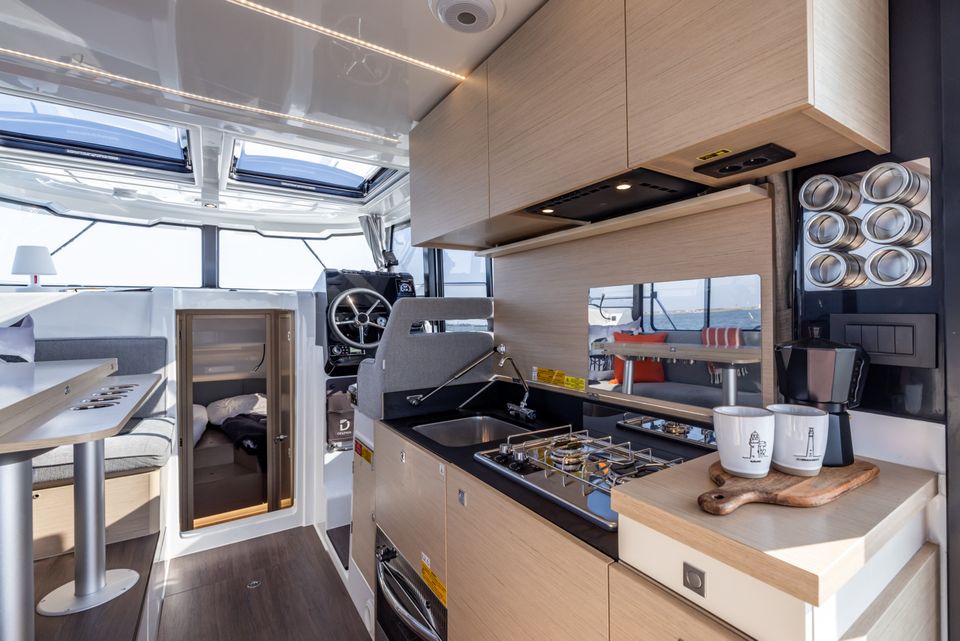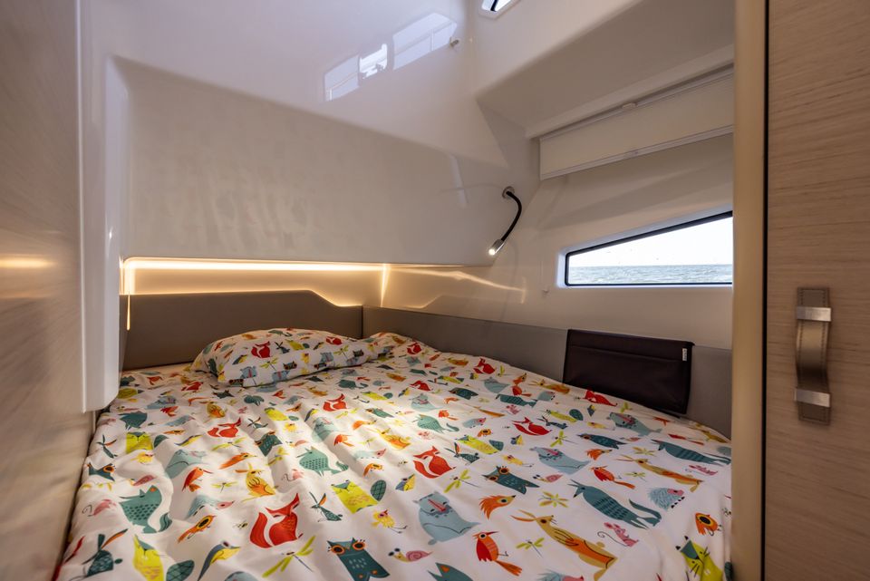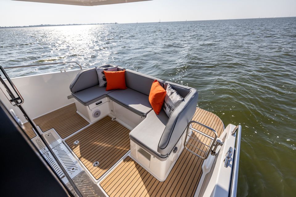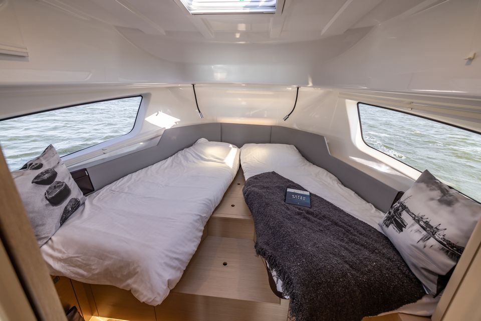 Binnen zijn twee cabines met vier vaste slaapplaatsen en de mogelijkheid voor extra slaapplaatsen in de salon. Er is een elektrisch toilet en een douche met warm water. Verwarming en 12V en 230V elektra zorgen voor comfort aan boord. Buiten geniet je van een ruim zwemplateau en fijne zitplaatsen. Met boegschroef en hekschroef manoeuvreer je eenvoudig in de haven.
