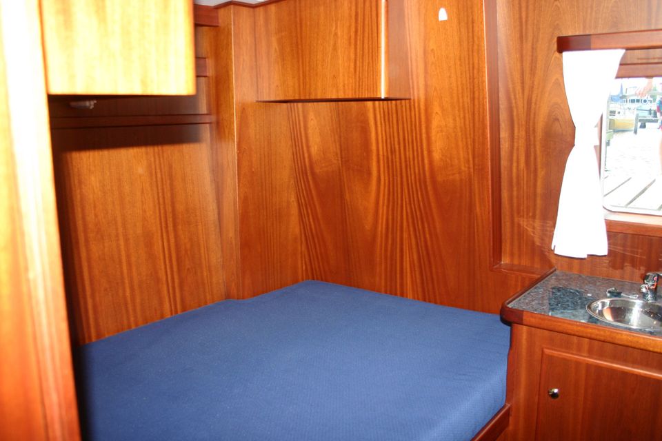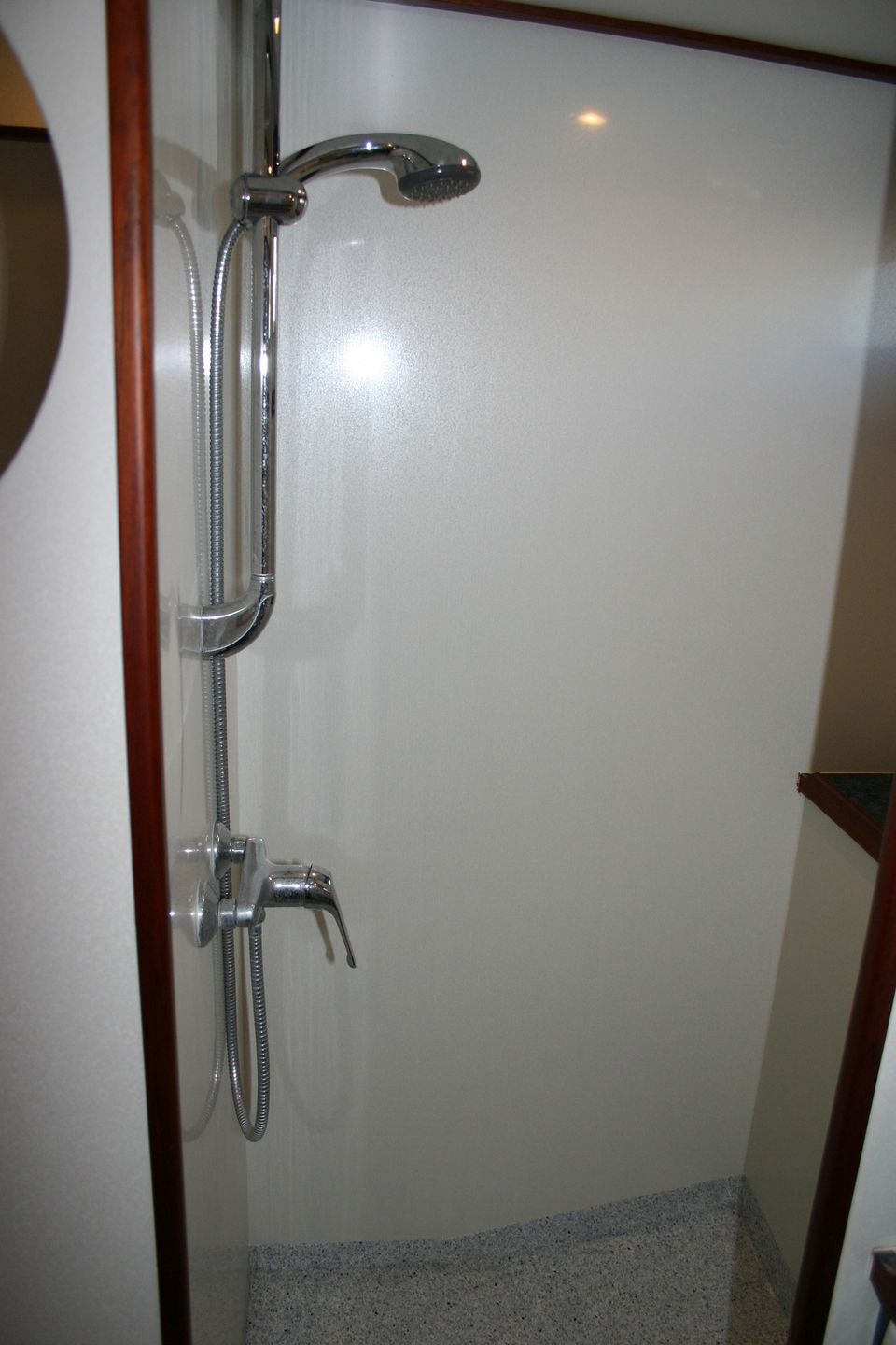 Indeling: Voorin bevindt zich een ruime hut met een vrijstaand Frans bed en een eigen wastafel. Daarnaast is er een aparte badkamer met douche, wastafel en elektrisch toilet. De keuken is volledig uitgerust voor 10 personen en beschikt over een 4-pits gaskooktoestel, afzuigkap, grote koelkast, combimagnetron, dinette en veel opbergruimte. De grote salon is gezellig ingericht met een comfortabele U-bank, televisie en radio/cd-speler. Centrale verwarming zorgt voor een aangenaam verblijf, ook bij minder mooi weer. Achterin vind je drie tweepersoonshutten, elk met een eigen wastafel en voldoende kastruimte. Er is ook een tweede badkamer met douche, wastafel en elektrisch toilet.